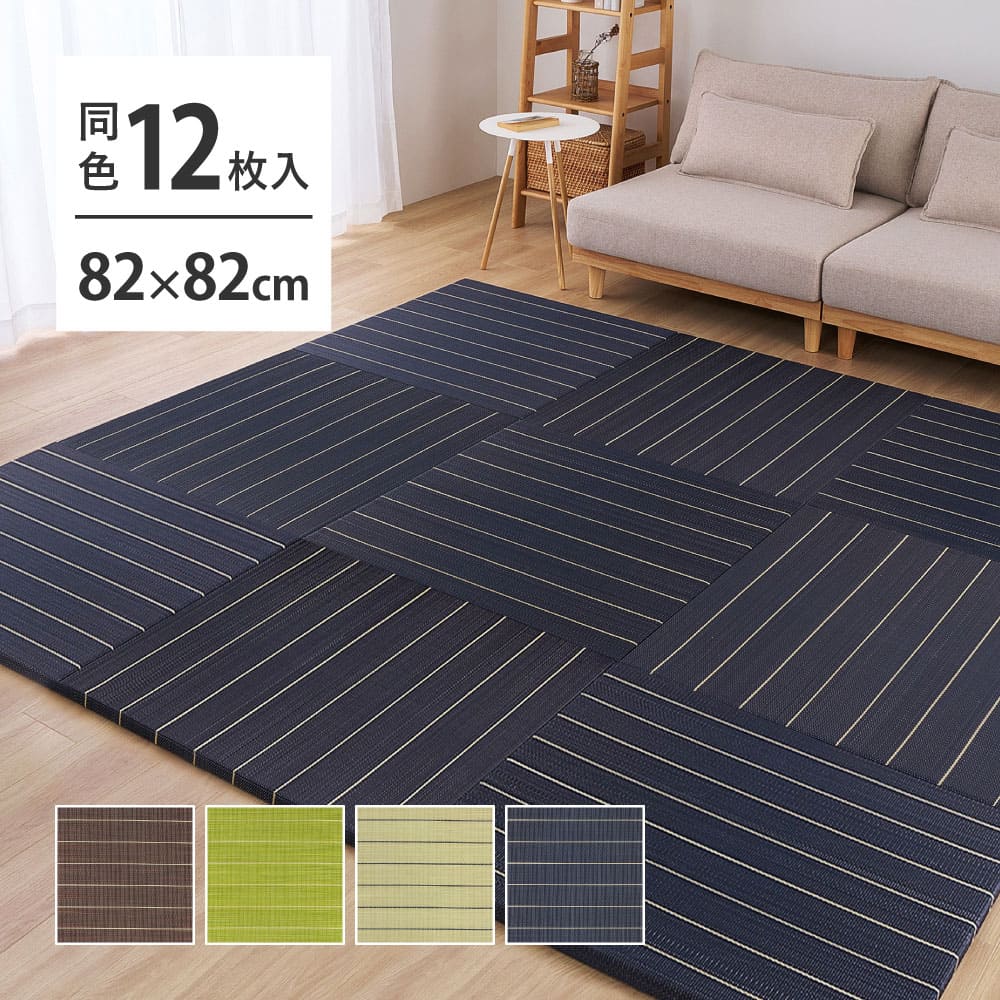 フローリングに置くだけで使える、い草素材の置き畳。軽量設計で一人でも扱いやすく、必要な枚数を並べるだけで空間に合わせたレイアウトが可能に。カットにも対応しているため、限られたスペースにも柔軟にフィットします。 い草ならではの吸湿性で夏はさらっと、断熱性により冬の冷気もやわらかく軽減。クッション性があり、足音や生活音の響きを抑えたい集合住宅の防音対策にも役立ちます。 ストライプ柄のデザインが空間に程よいアクセントを加え、リビングのくつろぎスペースやキッズスペース、ヨガや読書の時間にもおすすめ。ホルムアルデヒド試験をクリアしており、小さなお子さまやペットのいるご家庭でも安心して使える置き畳です。