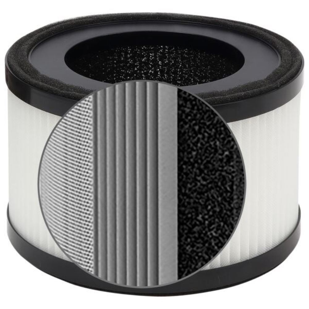 UV-C除菌ライトで空気を除菌!除菌性能約99.99%のUVライトを本体内部に搭載しています。360°全方位から空気を吸い込み、効果的に除菌し清潔な空気を届けます。3層構造のフィルターで0.3~0.5μmの身に見えない微細な粒子を約99.99%カット!プレフィルターで大き目のホコリを吸着し、H13のHEPAフィルターで空気中の微細の粒子を吸着。最後の活性炭フィルターでタバコなど煙や臭いの原因をカットし、効果的に空気を綺麗にします。超静音のスリープモード!ナイトライトと操作パネルが消灯し、風量1で稼働します。運転音はわずか25dBで就寝時や仕事中でも気になりません。見やすく分かりやすいタッチパネル式でシンプルかつ直感的な操作を実現。またパネルのロック/解除で誤作動を防ぎます。