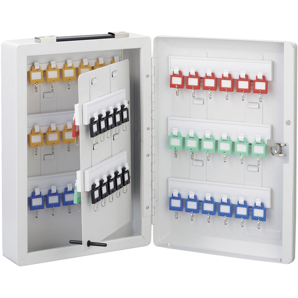 ●壁掛け・携帯兼用タイプ・別売のマグネットを使用すれば、スチール面に取付可能です。●扉は強力ネオジム磁石によりしっかり閉まります。●間口(mm):250●奥行(mm):90●高さ(mm):370●ホルダ数(個):60●色:白●シリンダー錠式(キー2個付) 質量3.74kg