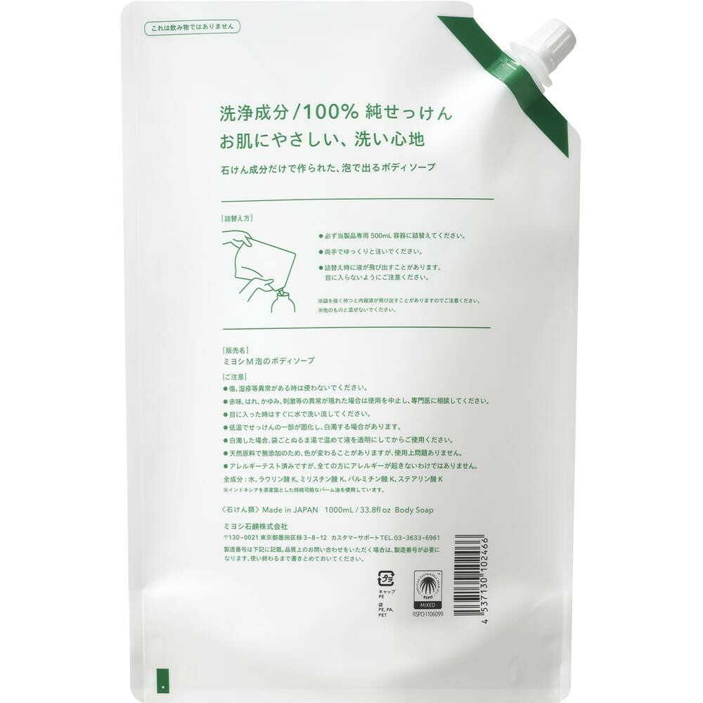 洗浄成分は「石けん」のみ。泡もちがよく、ヌルつきのないさっぱりとした洗い上がり。お肌の弱い敏感肌の方などにおすすめ。スパウトタイプ