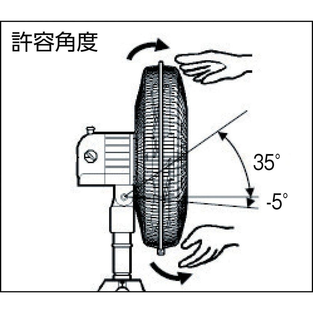 ●ホコリに強い全閉式モーター工場扇です。●安全性の高いサーマルプロテクターを内蔵しています。●ワンプッシュで三脚の折りたたみが可能です。●俯仰角-5~40°に調節可能。●電源(V):単相100●消費電力(W)(50/60Hz):120/160●ハネ径(cm):45●幅(mm):840●奥行(mm):725●高さ(mm):1170~1280●電源コード長さ(m):1.7(プラグ付)●設置タイプ:スタンド●ハネ材質:樹脂●交換用ハネ:SF-45V-P-F●首振り:有●風量調節:3段式●風量([[M3]]/min):178/202●最大風量([[M3]]/min)(50Hz):178●最大風量([[M3]]/min)(60Hz):202●標準消費電力料金(50Hz):3.7円/h●標準消費電力料金(60Hz):5.0円/h●風速(m/min):288/326(50/60Hz)●電源コード長さ:1.7m(プラグ付)●ハネ:4枚(ポリプロピレン(PP)製)●首振角度:75° 質量11kg