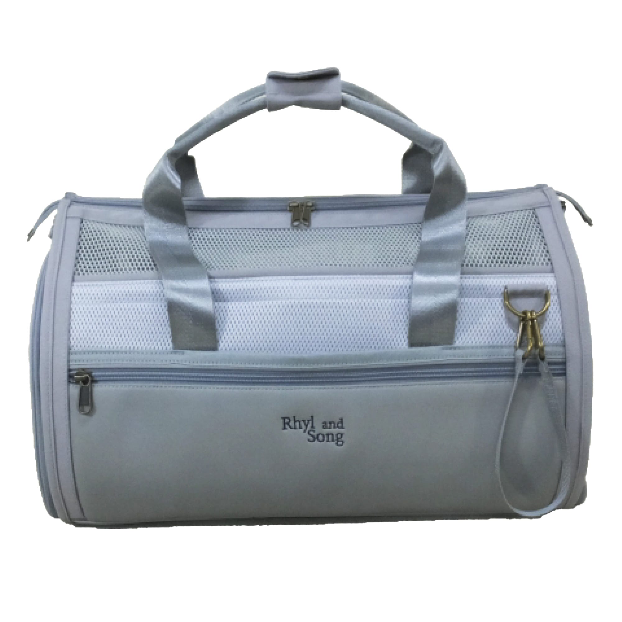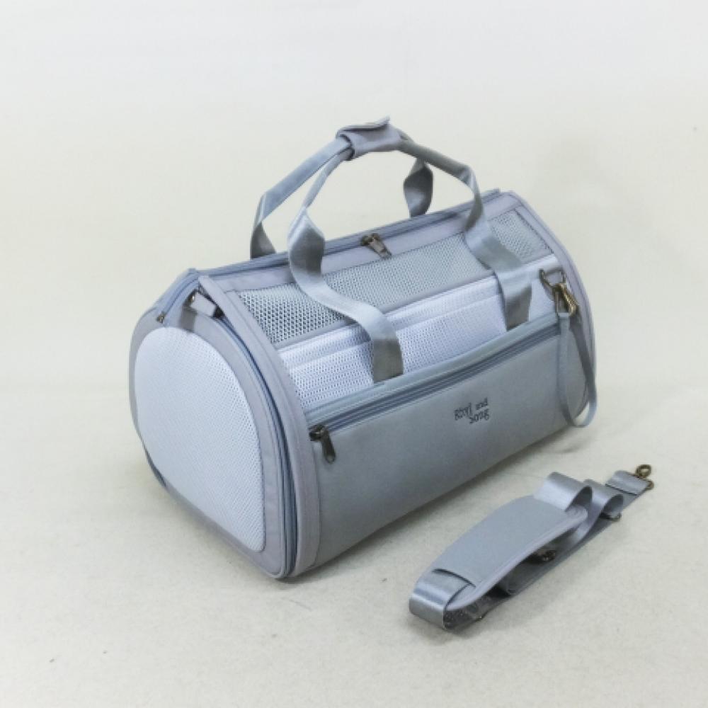 ・北欧風カラーを意識した多機能キャリーです。 ・ショルダーとして使え、キャリーケースにも装着可能。 ・半面を開放し中敷きの滑り止めマットを広げれば、車やカフェでもお使いいただけます。 ・飛び出し防止リード付き。 ●耐荷重:~7kg