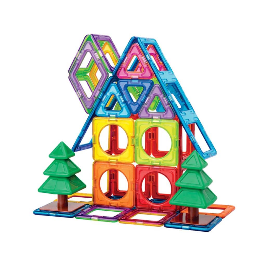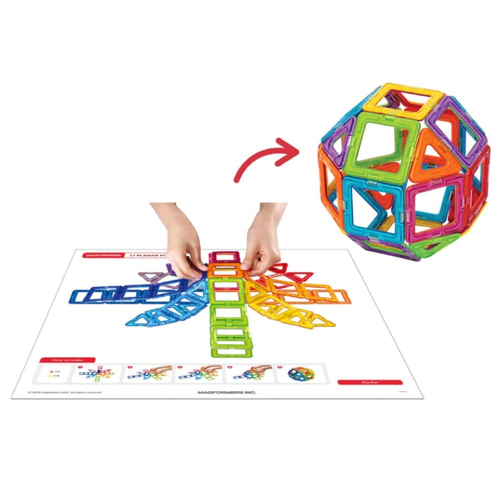 11種類の図形と3種類のカーブ・車輪とパーツの種類が充実し、創造遊びもぐんぐん広がる、シリーズで人気のオリジナル日本限定セットです。色や形の見分けができるようになる3歳頃からおすすめです。71ピース・収納BOXに入り、オリジナル日本語あそび方冊子付きです。 はじめは基本の形となる正三角形と正方形をつなげたり、簡単に磁石でくっつけたりと、遊ぶうちに立体ができることを発見していきます。 使いこなせるようになると、形のバリエーションや量がほしくなります。このセットなら正三角形・正方形以外にも五角形やカーブ・木のパーツ・車のタイヤのパーツが入っていて、さらに立体遊びに夢中になります。重量(g)2.1kg_x000D_ セット内容71ピース(14種類の図形、車輪パーツ入り)、収納ボックス付き、あそびがステップアップするガイドブック付き(実寸大で描かれた展開図・かたち合わせシート・作品例ブックレット)