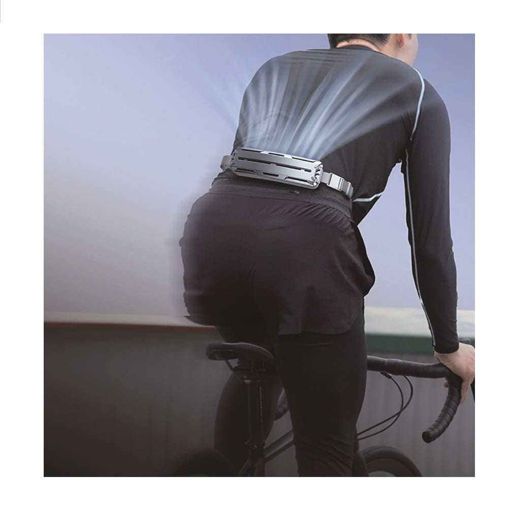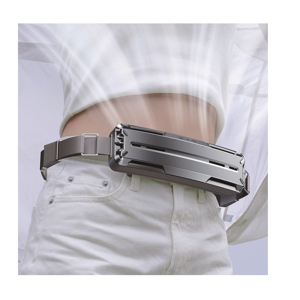 腰に巻くだけ!前後のファンとひんやり素材で汗ばむ夏も涼しく爽やかに ●風量3段階調節●前後独立運転可能!●バッテリー容量5000mAhで最大5.5H●ウエストサイズ:最長100cm●PCM素材で涼感アップ! 【仕様】 ●製品寸法:幅200×奥行40×高さ55mm(ベルト含まない片側のみの寸法)●重量:577g●電圧:5V●電流:2A●バッテリー容量:5000mAh●ベルトの長さ:最長約100cm●充電時間:約3.5時間●充電端子:USB Type-C●