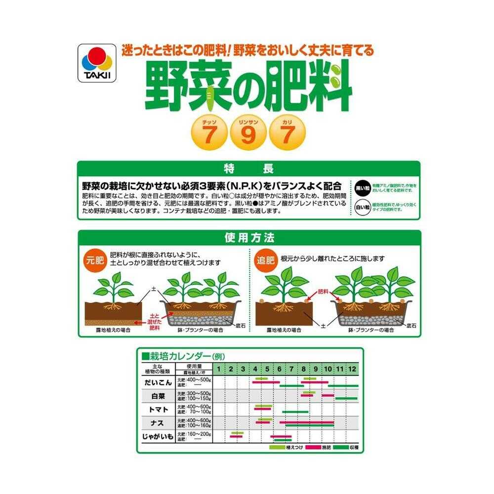 様々な野菜の栄養補給に 植物の生育に必要な成分をバランスよく含んだ、様々な野菜に使用できる肥料です。 まきやすい粒状タイプ。 有機原料も含み、野菜を美味しくします。 緩効性肥料も配合されており効き目が長持ちします。