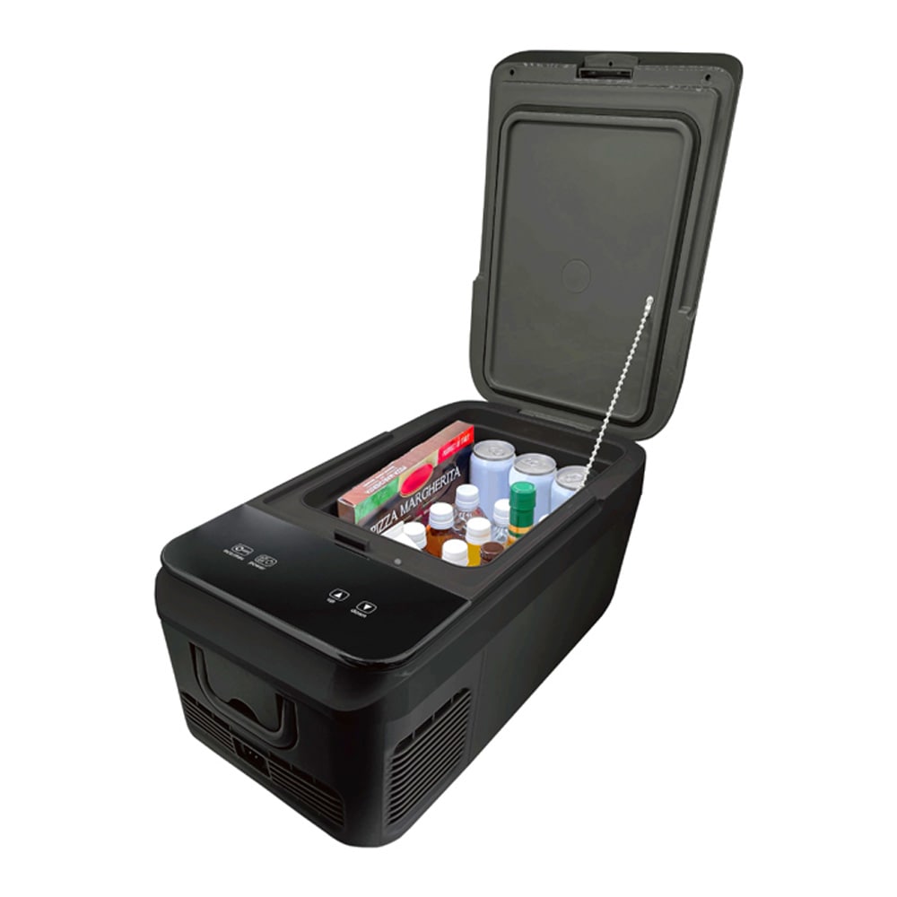 ●容量たっぷり18L:2Lペットボトル最大4本/500mlペットボトル最大15本/350ml缶最大22本 ●タッチパネル式ディスプレイ ●庫内ライト搭載:開けると自動点灯 ・商品名:18L冷凍冷蔵庫 ・型番:RA-CFR18-BK ・カラー:ブラック ・外装サイズ:(W)約315×(D)約580×(H)285mm ・本体重量:約9kg ・定格内容積:冷凍及び冷蔵用定格内容積 18L ・冷凍機の種類:圧縮式 ・冷却方式:電動冷却ファン方式 ・材質:ABS ・温度設定範囲:-20C~10C(周囲温度により変動します) ・温度表示範囲:-40C~40C ・定格入力電圧:DC12V/DC24V ・定格入力電波:3.8A(DC12V)/1.9A(DC24V) ・安全ヒューズ:8A ・定格消費電力:36W ・使用環境温度:0C~40C ・保存環境温度:0C~40C ・保証期間:ご購入日より6ヶ月間(但し、弊社保証規定に基づきます。) ・セット内容:本体、ACアダプタ(約45cm)、ACアダプタ用ACコード(約142cm)、車載用DC電源コード(約240cm)、取扱説明書(保証書)