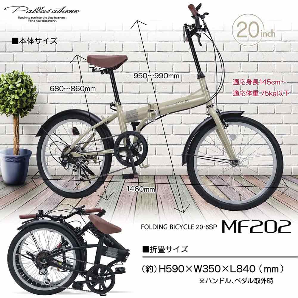 ●自然に溶け込む厳選カラーバリエーション! ●シマノ6段変速機(サムシフト)付で快適走行! ●簡単折畳で収納にも便利! ●サイフに優しいバリュー自転車! 本体サイズ(mm)H950~990×W550×L1460 外箱・折畳サイズ(mm)H590×W350×L840 サドル高さ(mm)680~860 本体重量(N・W)約15.0kg 梱包重量(G・W)約17.5kg 適応身長145cm~ 適応体重75kg以下 JIS耐振動試験合格品 フレーム/スチール リム/アルミ 前輪ブレーキ/キャリパーブレーキ 後輪ブレーキ/バンドブレーキ 変速シフター・ディレイラー/シマノ ハンドル・バー/セミフラットタイプ差込式 備考/折畳ジョイント部二重ロック方式・Wギアカバー・マットブラックフェンダー・ディレイラーガード 他