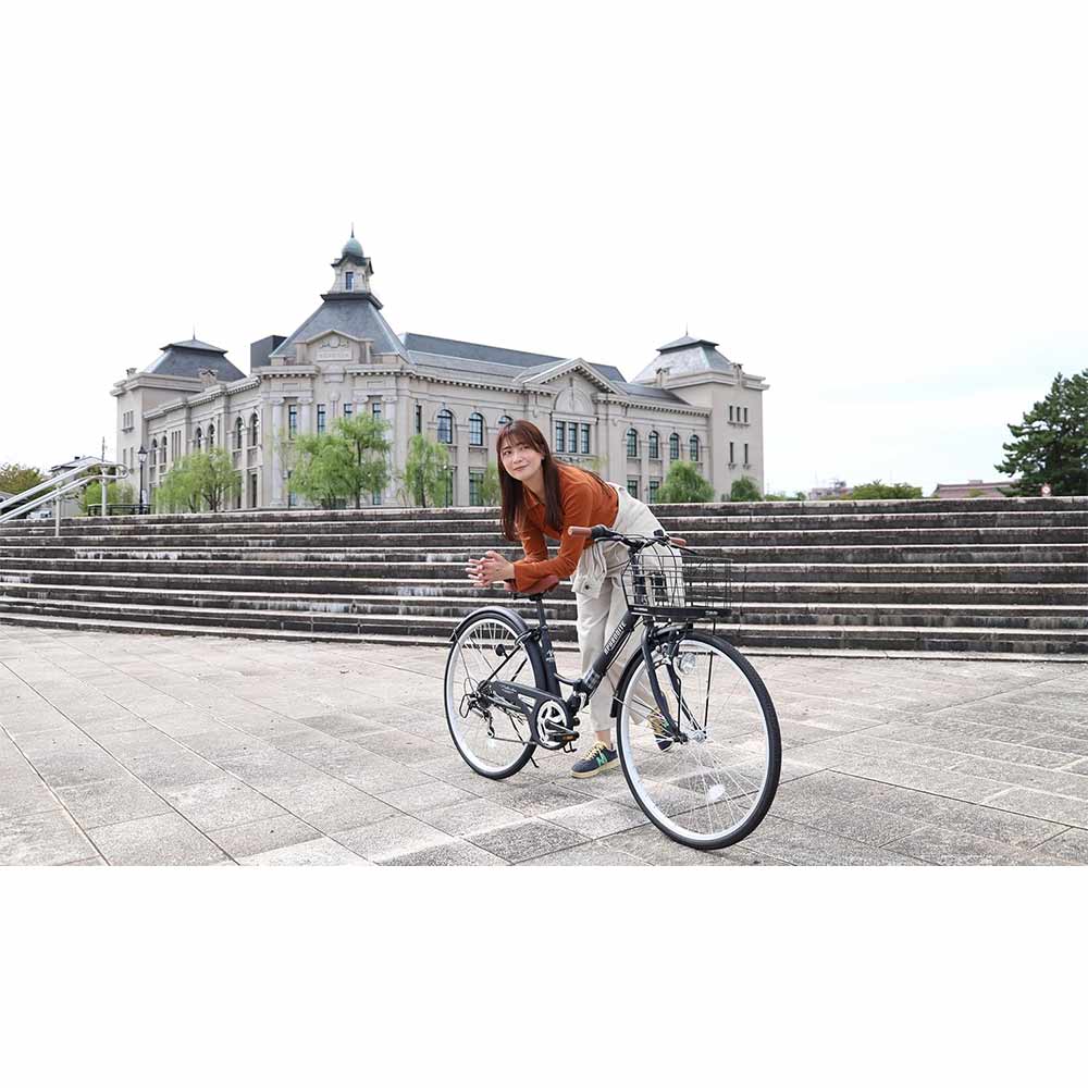 ●折畳もできるシティサイクル! ●2.25mm肉厚チューブで耐パンク性280%アップ! ●信頼のシマノ製6段ギアで快適走行! ●負荷が少なく明るいLEDダイナモライト! ●カジュアルに磨きをかけた乗りやすいV型フレーム! 本体サイズ(mm)H970~1020×W560×L1720 外箱サイズ(mm)H780×W360×L900 サドル高さ(mm)780~860 本体重量(N・W)約18.0kg 梱包重量(G・W)約21.0kg 適応身長150cm~ 適応体重75kg以下 JIS耐振動試験合格品 フレーム/スチール リム/アルミ 変速シフター/グリップシフト 変速ギア/シマノ ディレイラー/シマノ 前輪ブレーキ/キャリパーブレーキ 後輪ブレーキ/バンドブレーキ ハンドル・バー/セミフラットタイプ差込式 折畳部二重ロック ハーフチェーンカバー LEDダイナモライト オリジナルバスケット リング錠肉厚チューブ ディレイラーガード 他