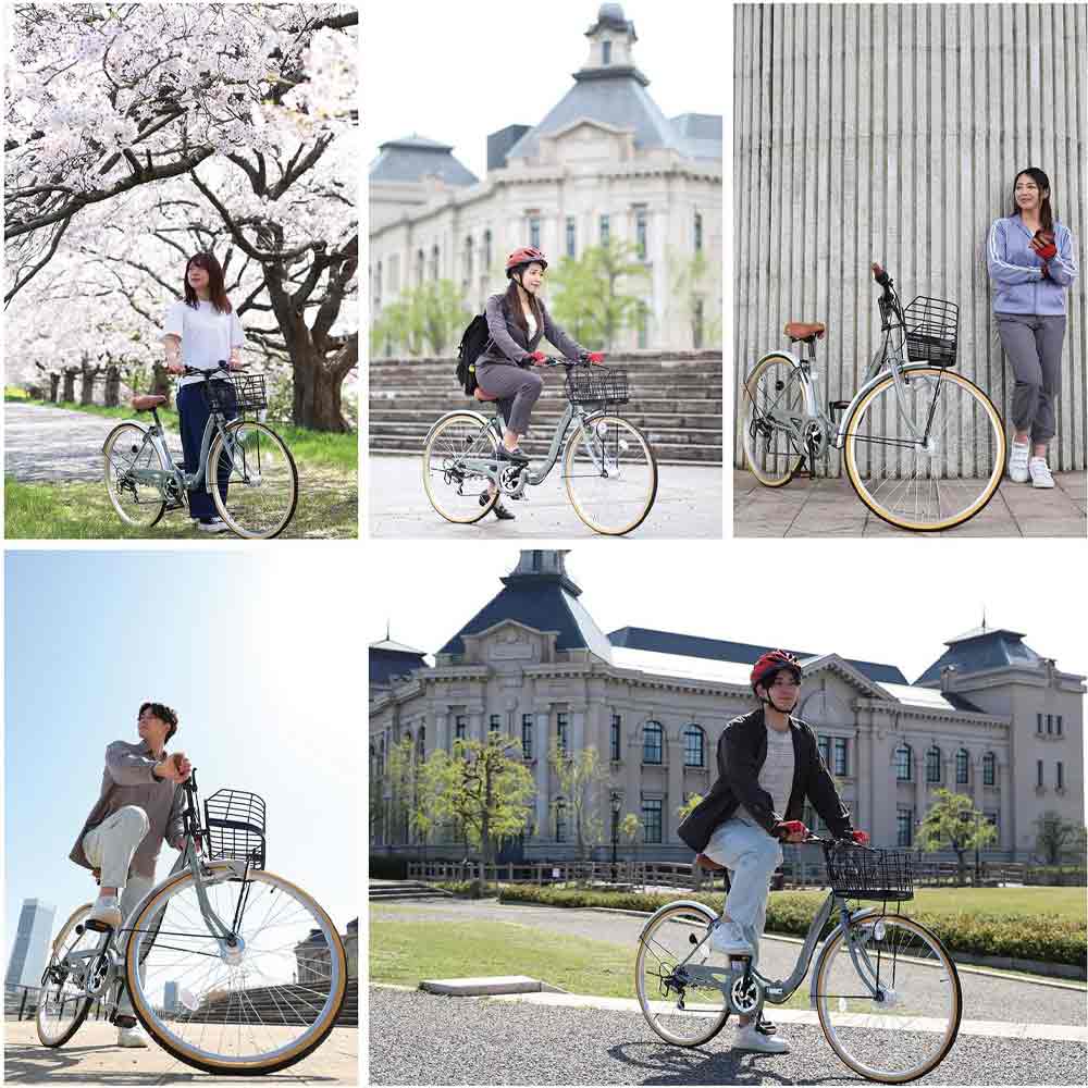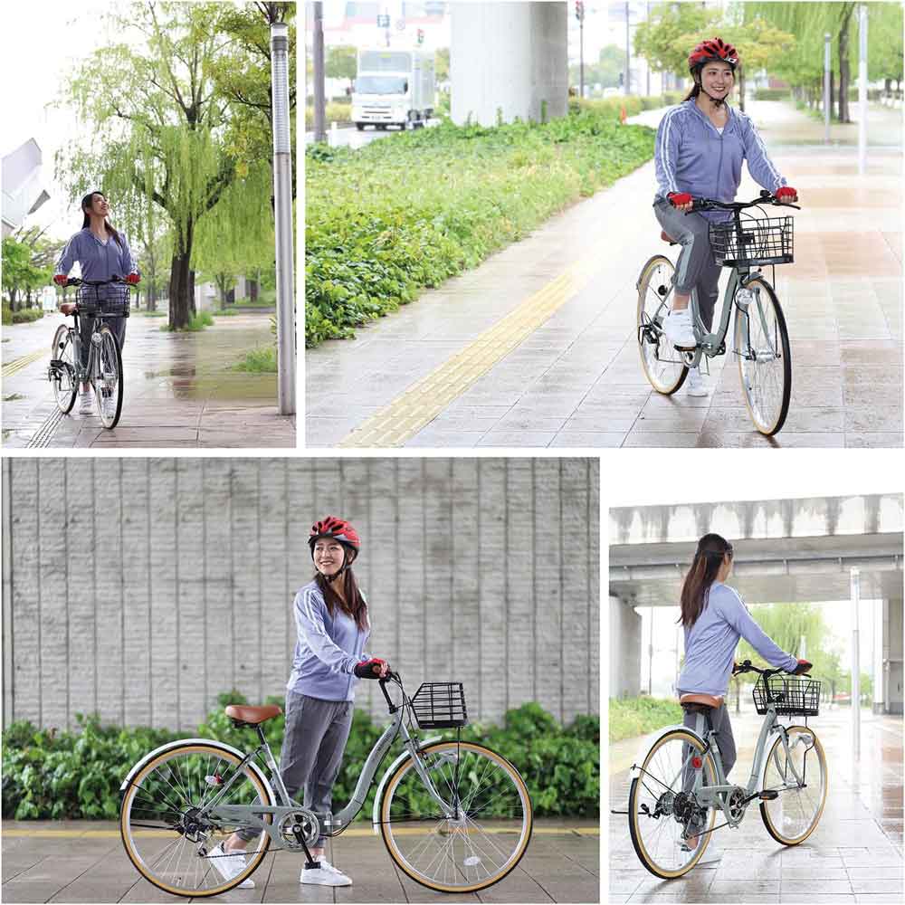 ●上品なスタイルで乗りやすいループフレーム! ●折畳機能もついてクルマに積んだり、収納もラクラク! ●暗くなると自動で点灯! 便利なLEDオートライト装備! ●シマノ製6段ギア搭載でどこでも快適走行! 本体サイズ(mm)H980~1020×W550×L1780 外箱サイズ(mm)H750×W360×L900 サドル高さ(mm)760~860 バスケット(mm)約W320×D230×H180 本体重量(N・W)約18.0kg 梱包重量(G・W)約21.0kg 適応身長150cm~ 適応体重75kg以下 IS耐振動試験合格品 フレーム/スチール リム/アルミ 変速シフター/グリップシフト 変速ギア/シマノ ディレイラー/シマノ 前輪ブレーキ/キャリパーブレーキ 後輪ブレーキ/バンドブレーキ ハンドル・バー/セミフラットタイプ・差込式 備考/LEDオートライト・ハーフカバーチェーンケース・オリジナルバスケット・リング錠・折畳部二重ロック