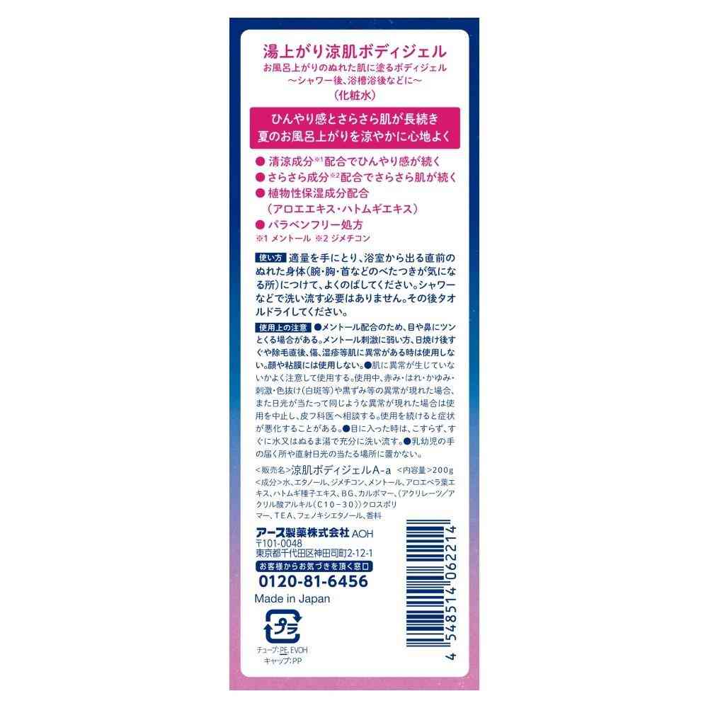 - > アース製薬 湯上がり涼肌 ボディジェル 200g [3個セット]