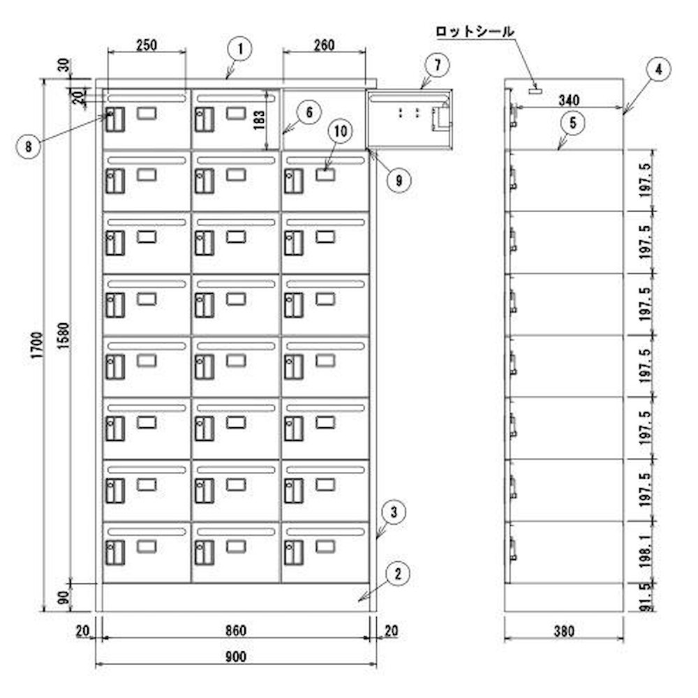サイズ:外寸法:W900×D380×H1700、内寸法:W260×D340×H183mm、重量:46.8kg