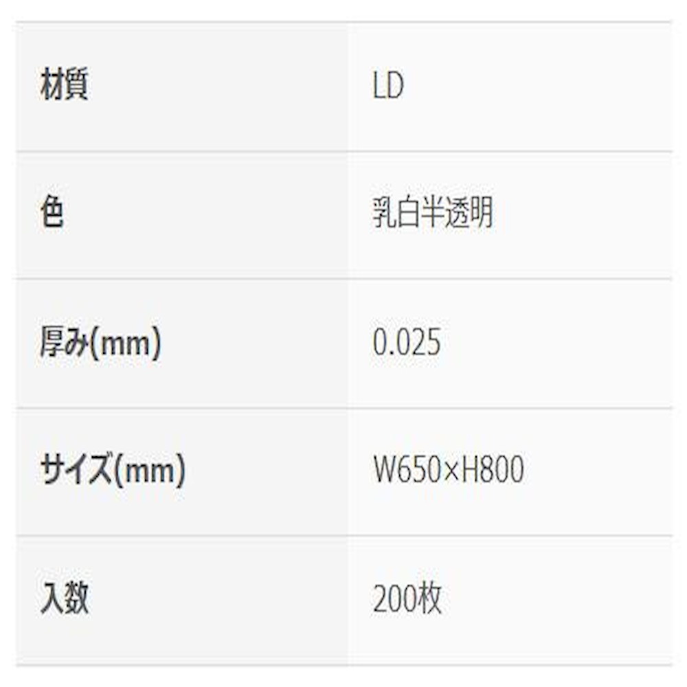 200枚入り、サイズ:0.025mm×650mm×800mm
