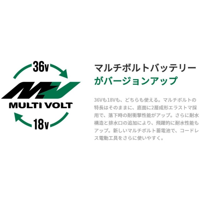 ●従来品(BSL36A18)にエラストマを追加したことで、落下時の衝撃に強くなりました。●排水性を強化したことで耐水性アップしています。●従来の充電器でも充電可能です。●電池残量表示付きで、不意の電池切れを防げます。●36V製品、18V製品がこの電池一つで両方使用可能です。●(一部商品を除く。)●種類:電池パック●電圧(V):36/18●容量(Ah):2.5/5.0●全長(mm):118●全幅(mm):80●全高(mm):71●電池電圧(V):36●電池容量(Ah) :2.5●電池電圧2(V):18●電池容量2(Ah):5●適用充電器:UC18YDL2、UC18YDL、UC18YTSL、UC18YSL3、UC18YFSL、UC18YML2、UC18YKSL、UC36YSL●装着方式:スライド式●リチウムイオン電池 質量740g