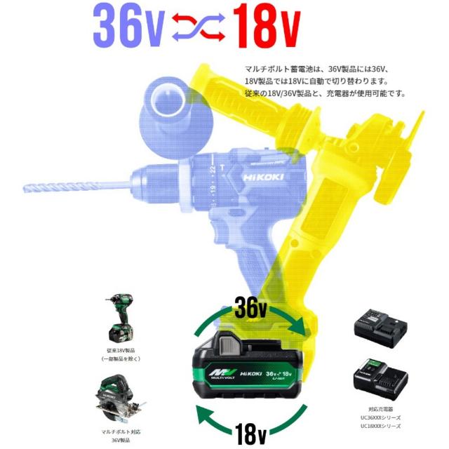 ●非対応工具一覧:チップソーカッター:CD18DBL、丸のこ:C18DBL、丸のこ:C18DBAL(HiKOKIブランドの本体では使用可能)、冷温庫:UL18DSL●電池パック・充電器は別売です。