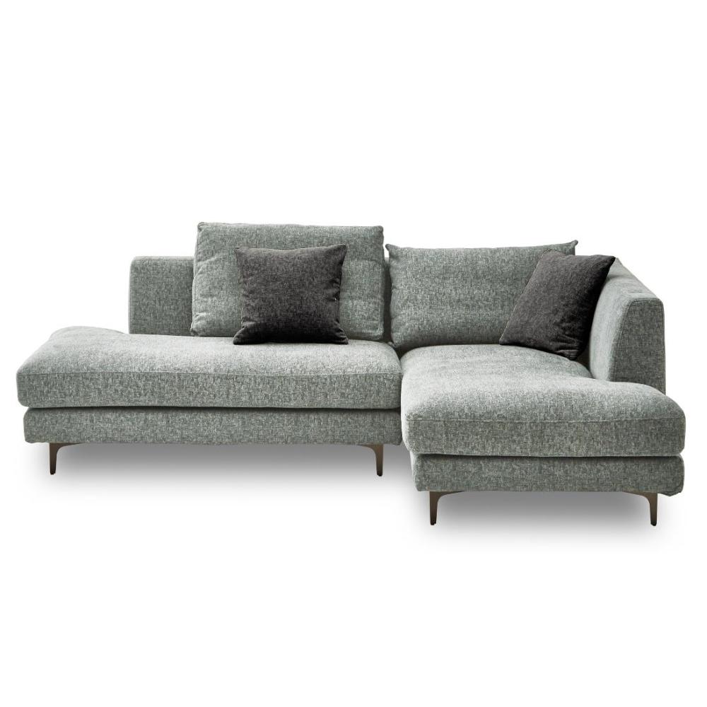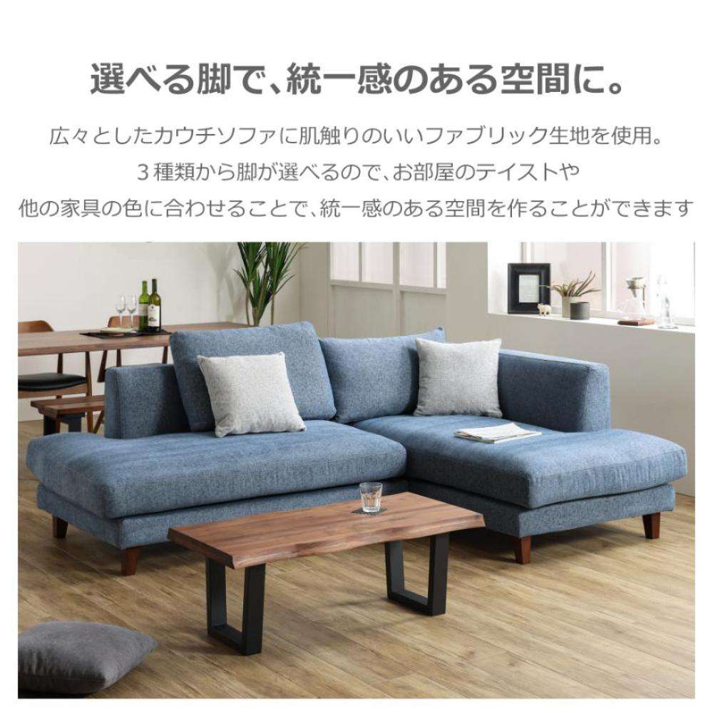背クッションと座面クッションにフェザー入りの左カウチソファ。