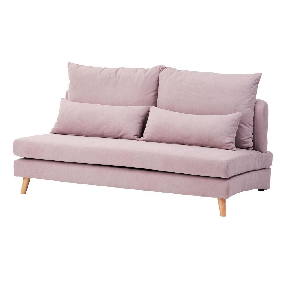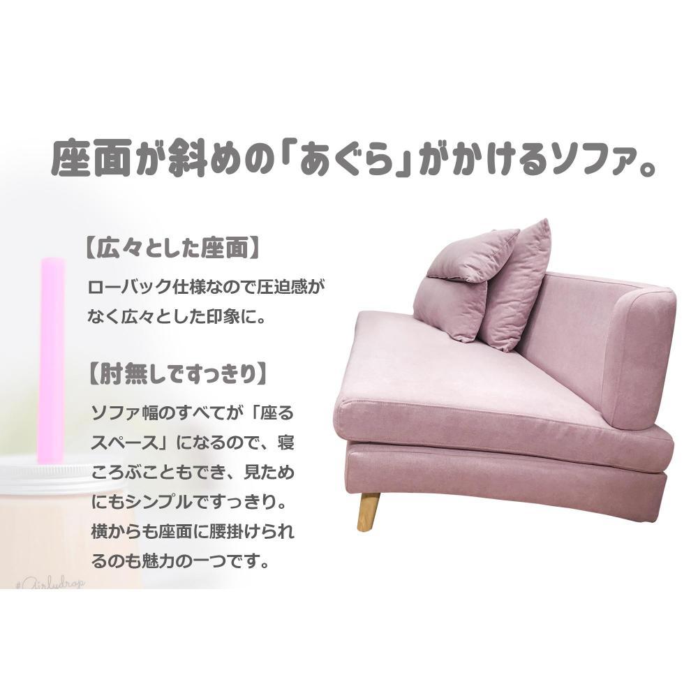 広い奥行きと肘無しであぐらのしやすいソファ。ランバークッション2個付き。