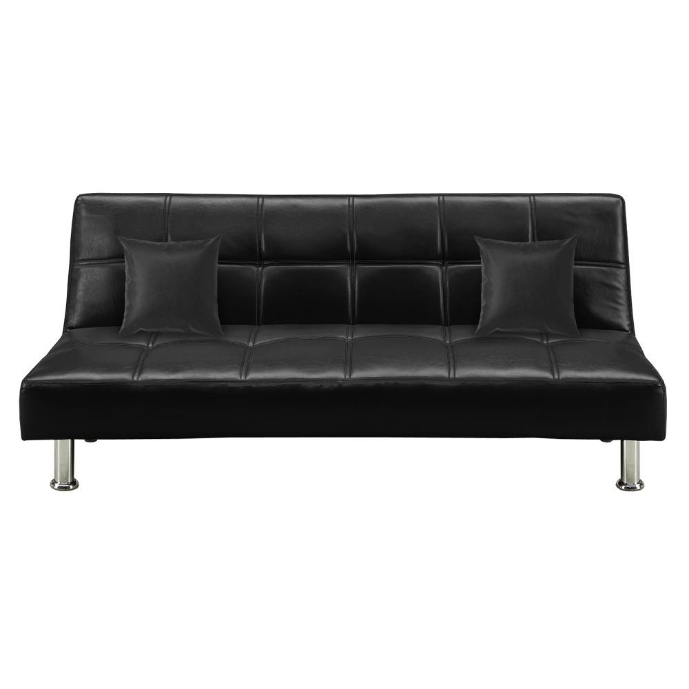 レトロでシンプルなデザインのソファベッド。クッション2個付き。