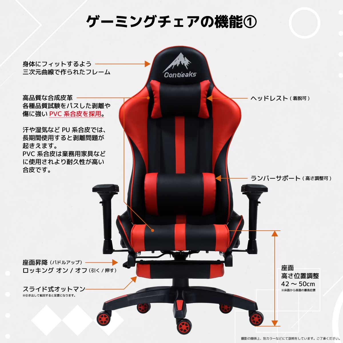 ゲーミングチェア デスクチェア ワークチェア レーシングチェア オフィスチェア ゲーム チェア 椅子 ゲーミング デバイス デスク 机 ゲーミングデスク eスポーツ 合皮 布 メッシュ コンティークス