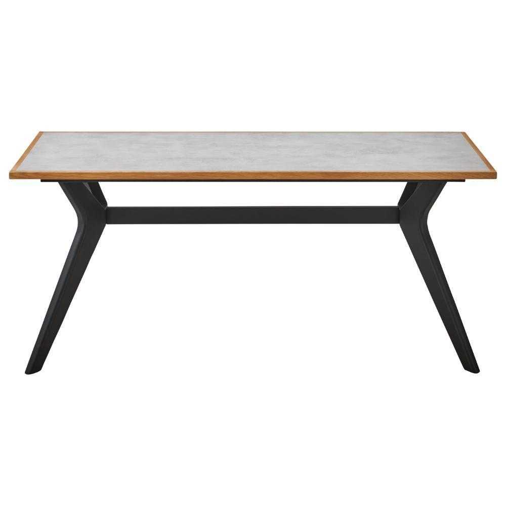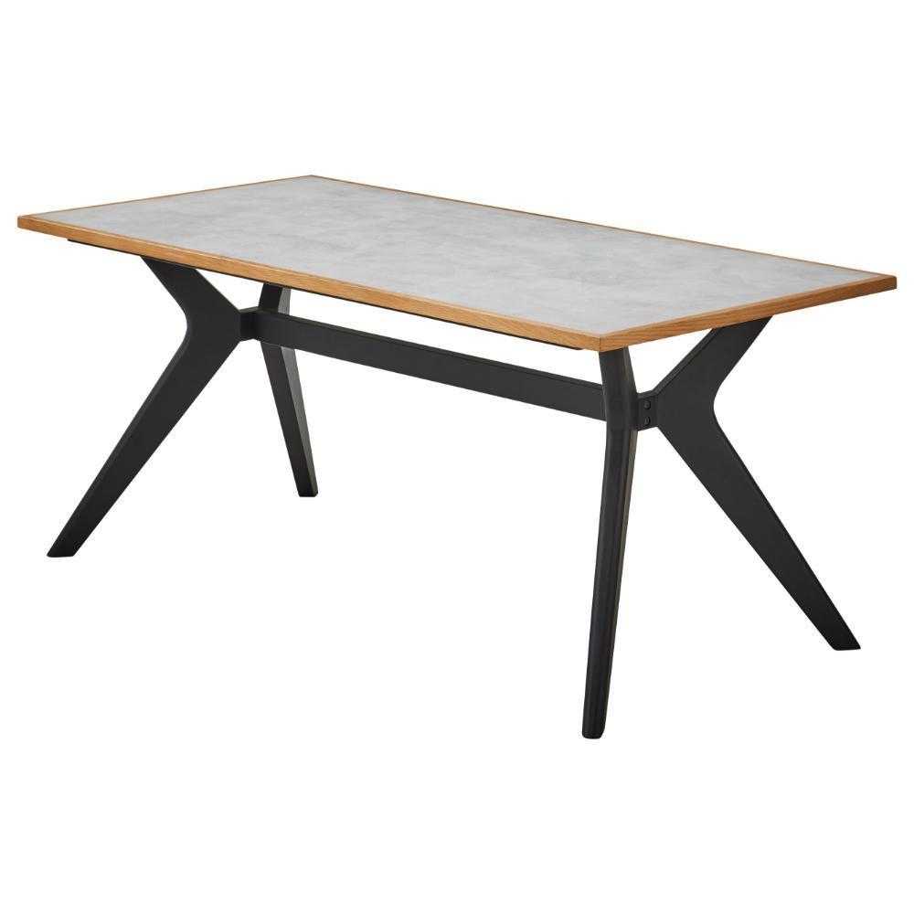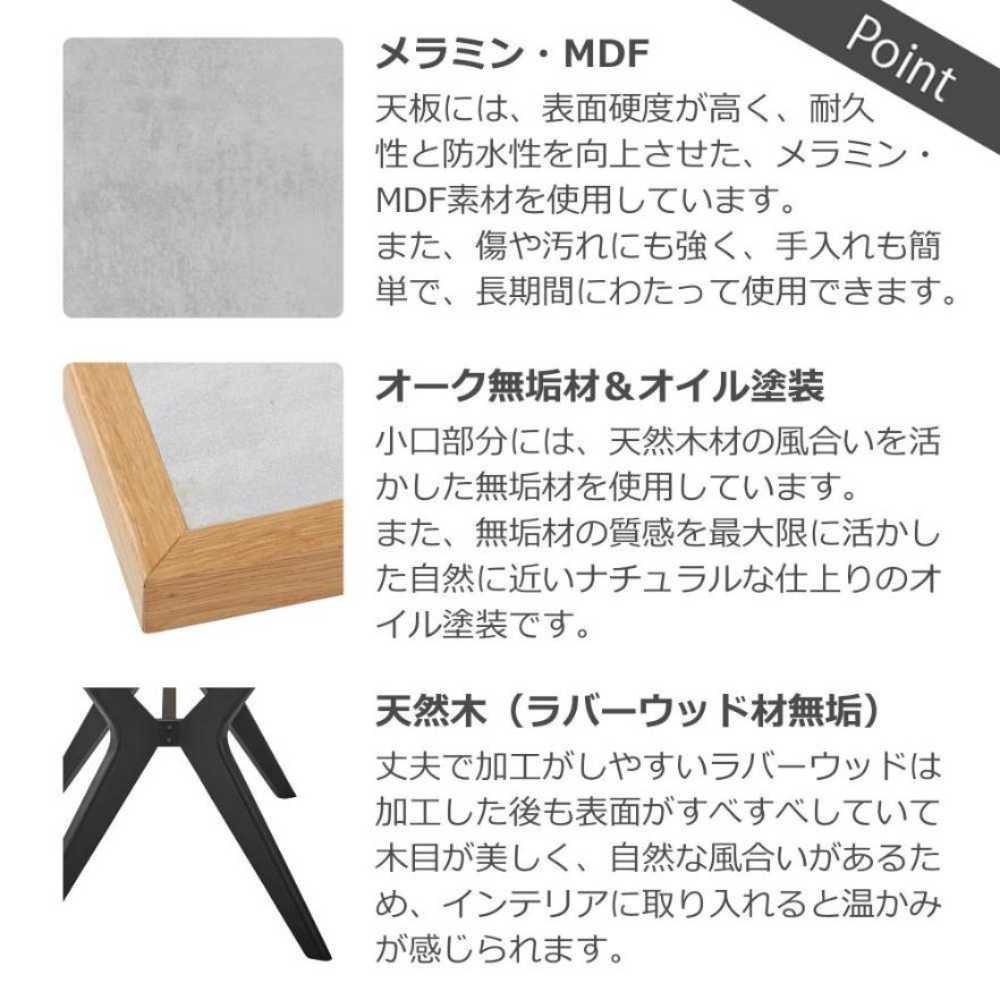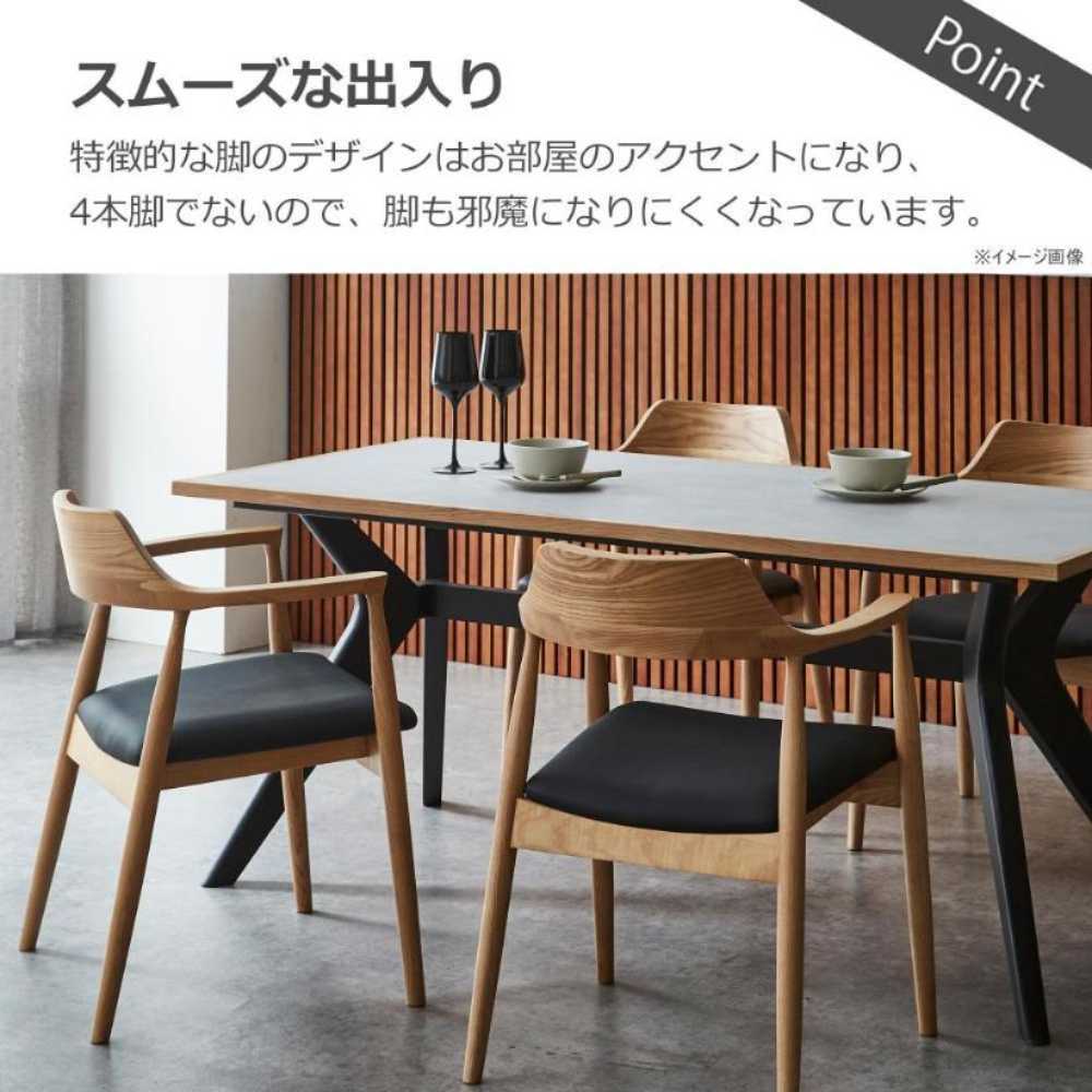 天板にメラミン、枠には木を使用した上品なデザインのダイニングテーブル。特徴的な脚のデザインはお部屋のアクセントになります。4本脚ではないので出入りも簡単です。