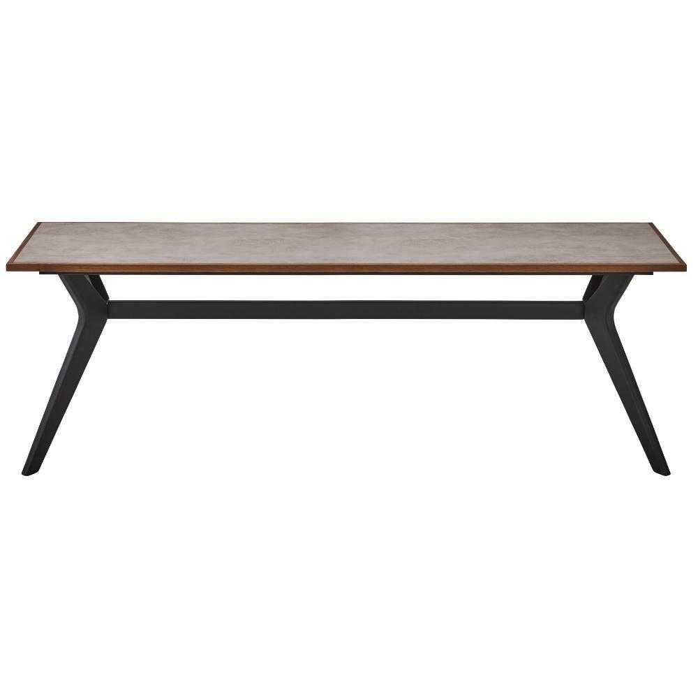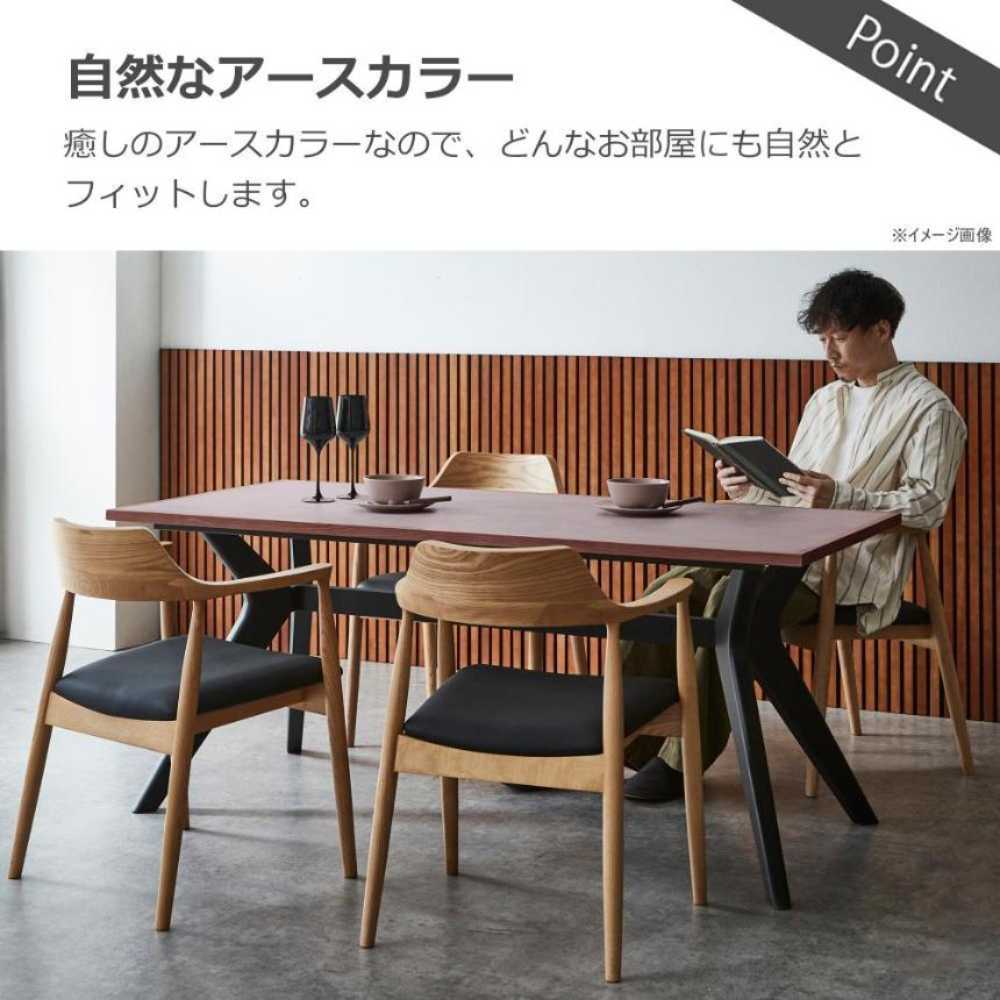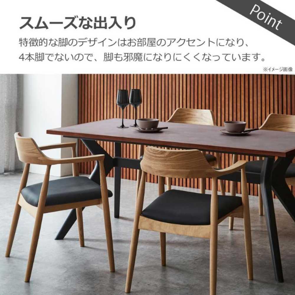 天板にメラミン、枠には木を使用した上品なデザインのダイニングテーブル。特徴的な脚のデザインはお部屋のアクセントになります。4本脚ではないので出入りも簡単です。