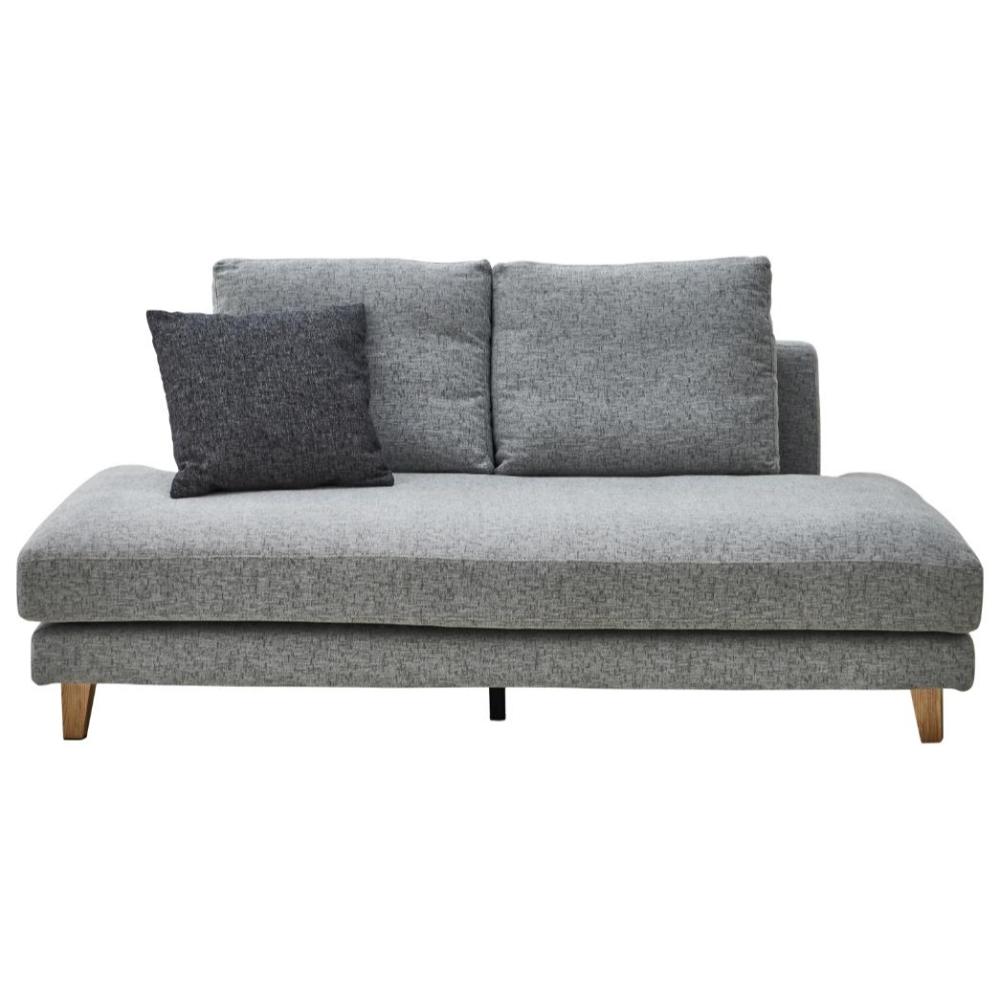 背クッションと座面クッションにフェザー入りのソファ。肘無なので広々使えます。