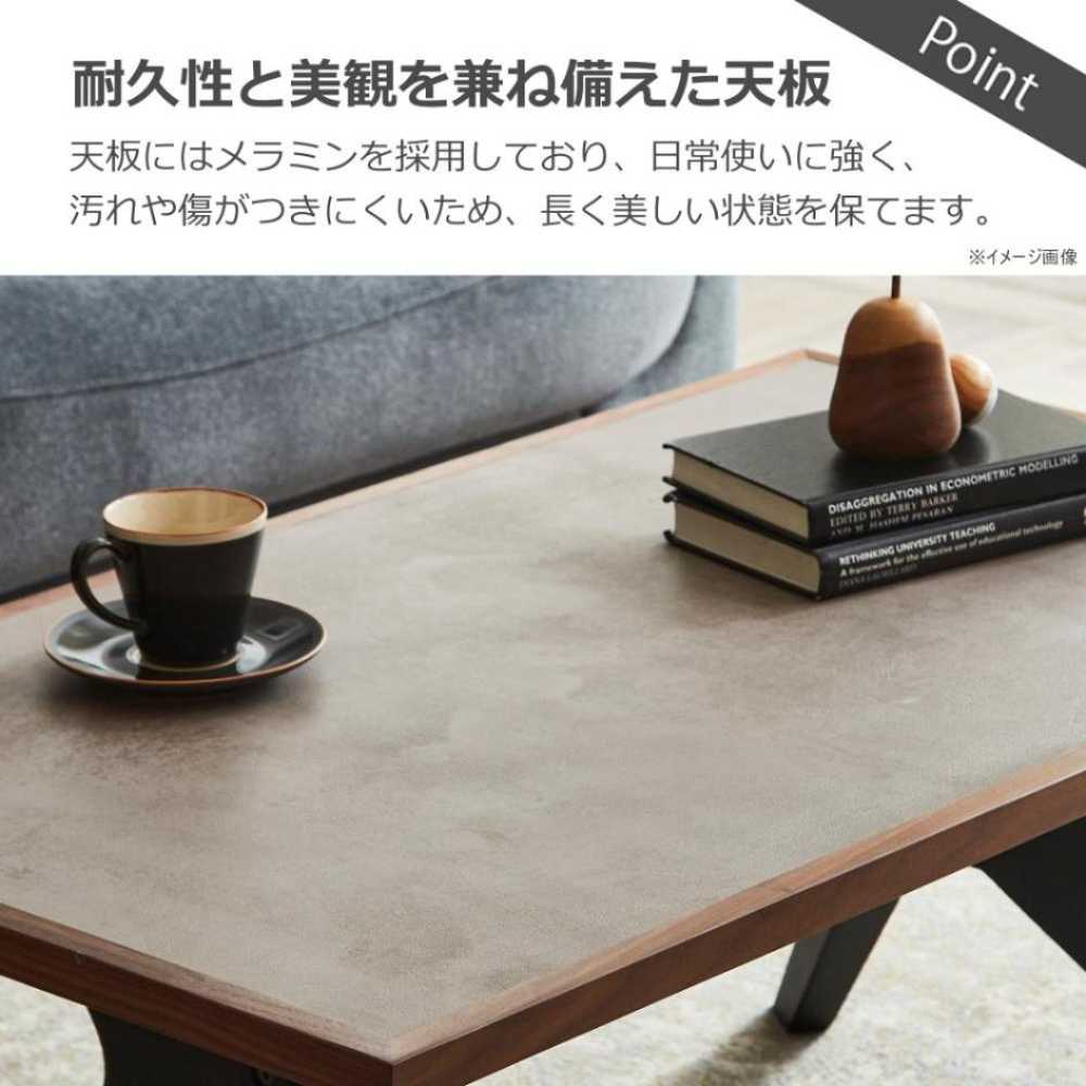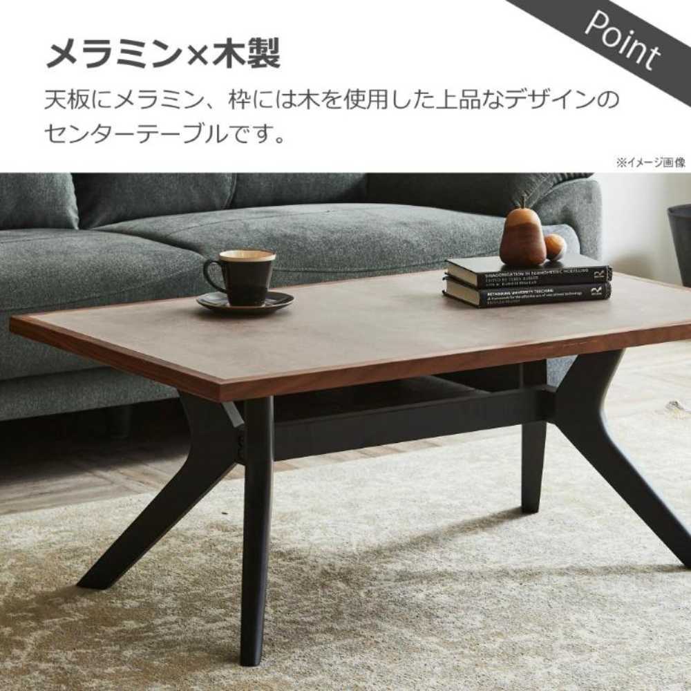 天板にメラミン、枠には木を使用した上品なデザインのセンターテーブル。ダイニングテーブルとセットでお使いいただくことでお部屋に統一感が出ます。
