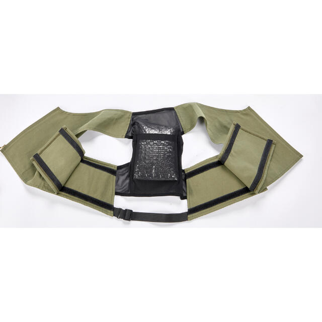 ●前面綿100%タイプですので、耐熱性が高く、火気を扱う現場にお勧めです。●セットの長時間タイプのアルミ保冷パックは40度環境下でも約6時間保冷します。●保冷剤を入れるポケットが背面に一つ、両脇に一つずつの計3箇所ありますので、効率的に体を冷やすことが出来ます。●ファン付き作業服と併用することで作業服内の環境をより快適に保ちます。●色:オリーブドラブ●サイズ:フリー●着丈(cm):36.5●胴周り(cm):98~138●身幅(cm):34●セット内容:アイシングベスト前面コットンタイプ1着、アルミパック長時間保冷剤3個●胴まわり寸法(cm):98~138●前丈(cm):22●セット内容:アイシングベスト前面コットンタイプ1着、アルミパック長時間保冷剤3個 質量767g