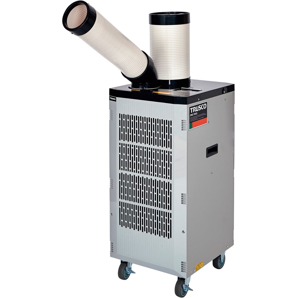 ●冷房能力とコストパフォーマンスが高いスタンダードタイプのスポットエアコンです。●従来機種よりドレン水の排出量が半減しました。●チリやホコリの侵入を防ぐ全閉式モーターを採用し、押しボタンスイッチに防塵カバーを取り付け、より防塵性がアップしました。トラスコのスポットエアコンはプロ仕様!●運転モードは弱冷・強冷の2パターンかたら選べます。●ウレタンキャスター(75mm)で油の多い作業現場にも最適です。●コンパクト設計で設置場所を選びません。●風量・電源スイッチに防塵カバーを装着し、ほこりや粉じんが入ることを防ぎます。●排熱ダクトは丈夫なハードタイプです。●ドレン水は4Lタンクに貯水し定期的に捨てて頂くか、ドレンホースを接続し、排水口へ直接排水可能です。●HFC系冷媒R407Cを使用しています。●電源(V):三相200●冷房能力(kW)(50/60Hz):2.2/2.5●消費電力(kW)(50/60Hz):1.33/1.69●口数:1●首振り有無:なし●タンク容量(L):4●本体寸法(mm)幅:400●本体寸法(mm)奥行:430●本体寸法(mm)高さ:845 質量39.5kg