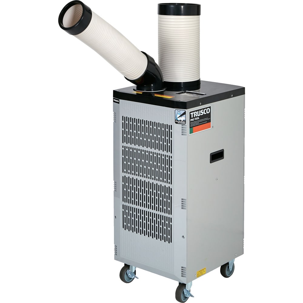 ●冷房能力が高い強冷却タイプのスポットエアコンです。●ドレンレス仕様により、排水作業の手間が減り、より使いやすくなりました。●チリやホコリの侵入を防ぐ全閉式モーターを採用し、押しボタンスイッチに防塵カバーを取り付け、より防塵性がアップしました。トラスコのスポットエアコンはプロ仕様!●運転モードは弱冷・強冷の2パターンから選べます。●ウレタンキャスター(75mm)で油の多い作業現場にも最適です。●首振り機能付きで広範囲での送風が可能です。●コンパクト設計で設置場所を選びません。●首振り・風量・電源スイッチに防塵カバーを装着し、ほこりや粉じんが入ることを防ぎます。●HFC系冷媒R407Cを使用しています。●電源(V):三相200●冷房能力(kW)(50/60Hz):2.7/3.0●消費電力(kW)(50/60Hz):1.21/1.55●口数:1●首振り有無:あり●タンク容量(L):4●本体寸法(mm)幅:400●本体寸法(mm)奥行:430●本体寸法(mm)高さ:845●電源コード長さ(m):なし●騒音値(dB)50/60Hz:65/66 質量40.5kg