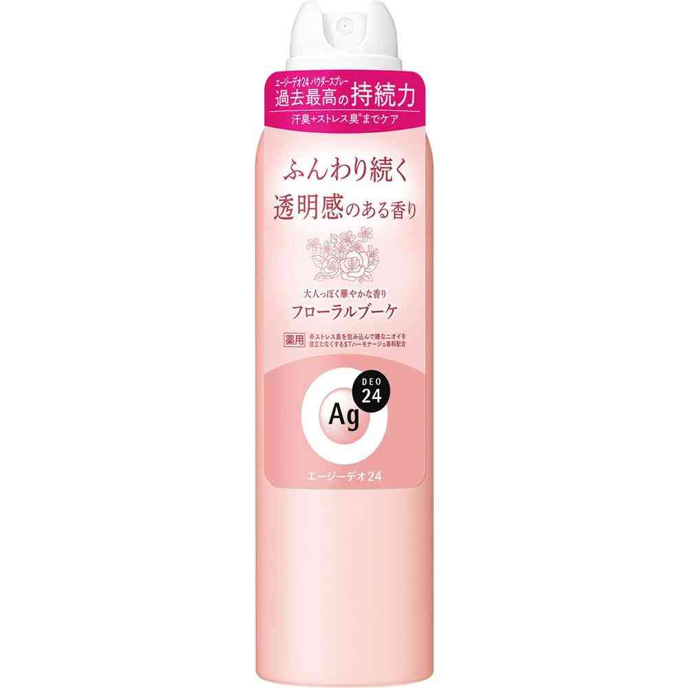 24時間、肌快適ケア。 いつでもどこでもずーっと快適な肌を願う人へ。 ニオイ菌集中殺菌(有効成分:イソプロピルメチルフェノールSP複合体)! 汗臭対応。 ストレス臭※ケア。 汗・皮脂対応。 高密着処方。 ※ストレス臭を包み込んで嫌なニオイを目立たなくするSTハーモナージュ香料配合。 大人っぽく華やかな香りフローラルブーケ (販売名:パウダースプレー fA(FB))