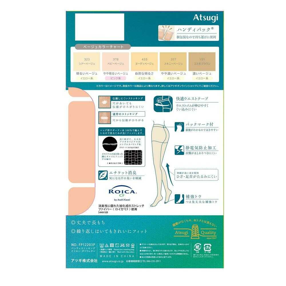 ●穴があいても伝線がひろがりにくい。 ●ウエストゴムが伸びやすく、くい込みにくい快適ウエストテープ。 ●前後がわかるバックマーク付。 ●衣類がまとわりつきにくい静電気防止加工。 ●つま先丈夫な補強トウ。エチケット消臭。 ●ひざ・足首がたるみにくい。