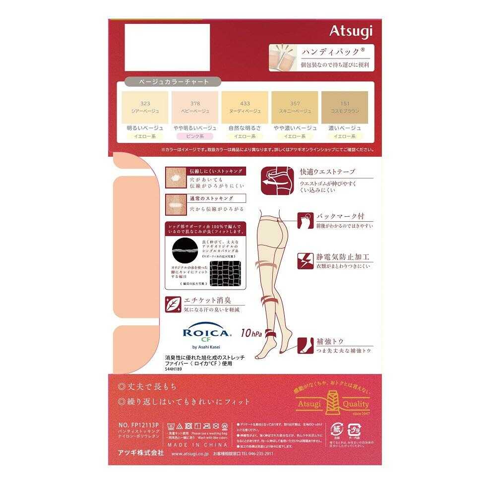 ●穴があいても伝線がひろがりにくい。 ●ウエストゴムが伸びやすく、くい込みにくい快適ウエストテープ。 ●前後がわかるバックマーク付。 ●衣類がまとわりつきにくい静電気防止加工。 ●つま先丈夫な補強トウ。エチケット消臭。