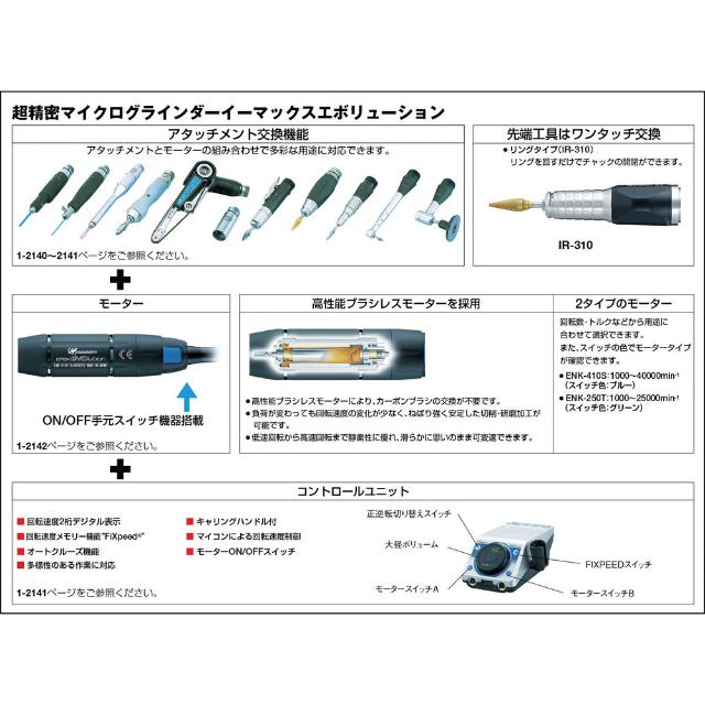 ●軸径6mm先端工具が使用できます。●ゴム製グリップカバーは手に柔らかく、滑り止めとなります。●工具交換はスパナ締め付けで確実にチャッキングできます。●全長(mm):102●外径(mm):φ25●無負荷回転数(min[[の-1乗]]):30000以下●デモ機発注コード:714-5929 質量210g