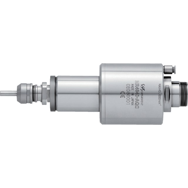 ●E4000シリーズはφ40mmクラス最強のスピンドルで最大出力1200W、最大トルク100cN・mを実現しています。●エアー駆動によるキャッチング方式を採用し、素早く簡単にコレットホルダの交換ができます。●スピンドル振れ精度が1μm以内で高精度加工が可能なうえ、工具寿命が延びます。●セラミックベアリングを採用しており、スチールベアリングに比べ耐久性は約2倍です。●ブラシレスモータを採用しており、カーボンブラシの交換が不要、またカーボンブラシの粉じんがベアリングに侵入することがなくなり寿命が延びます。●スピンドル部とモータ部の組み合わせが自由にでき、加工用途に応じた機種選定ができます。●外径(mm):φ40●全長(mm):169.9●許容回転速度(min[[の-1乗]]):40000●適合モータ:EM-4020、4020A、4040、4040A●クランプ部外径(mm):φ40●工具交換エアー圧:0.55~0.6MPa 質量2.16kg