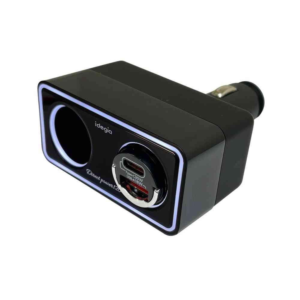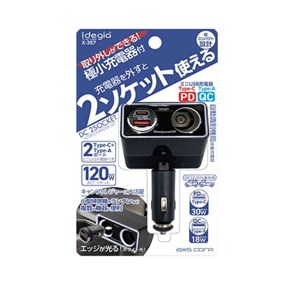 ●光沢パーツとマットパーツの組み合わせで高級感があるデザイン ●DC12V/24V兼用2ポートカーソケット+専用Type-C/Type-A コンパクトUSB充電器つき ●最大120Wまでの機器に対応 ●USB充電器のType-CポートはPD対応最大30W Type-Aポートは QCなど急速充電対応 最大18Wの高出力、ハイスピード充電対応 ●過電流保護回路内蔵で安全、安心対策 ●90度までの角度調整が可能 ●安心の10A ICヒューズ内蔵(ヒューズは交換できません。) ●ソケット部:入力電圧DC12V 最大許容出力 120W 入力電圧DC24V 最大許容出力 120W USB部:入力電圧DC12/24V ●USB充電器 Type-Cポート PD30W 5V/3.0A 9V/3.0A 12V/2.5A Type-Aポート QC18W