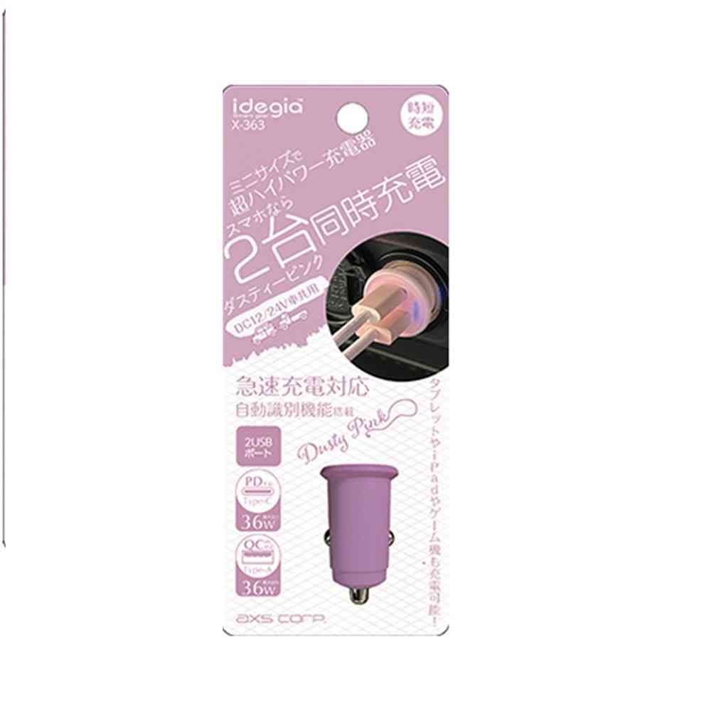 アークス、充電器、急速充電、4ポート、USB、ミニサイズ、ハイパワー、くすみカラー、ダスティピンク、車、X-363