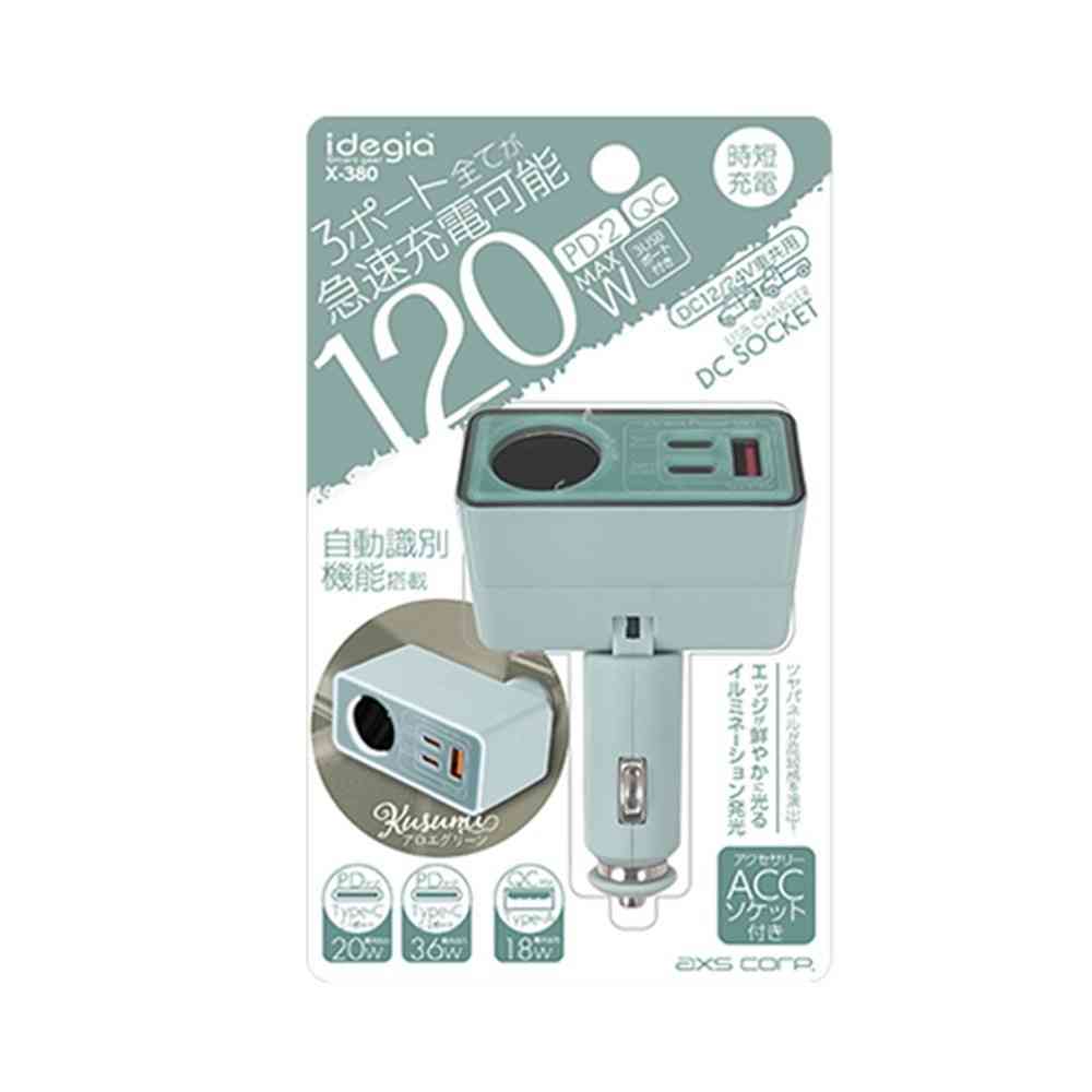 アークス、充電器、急速充電、自動識別、3ポート、USB、くすみカラ、アロエグリーン、車、X-380