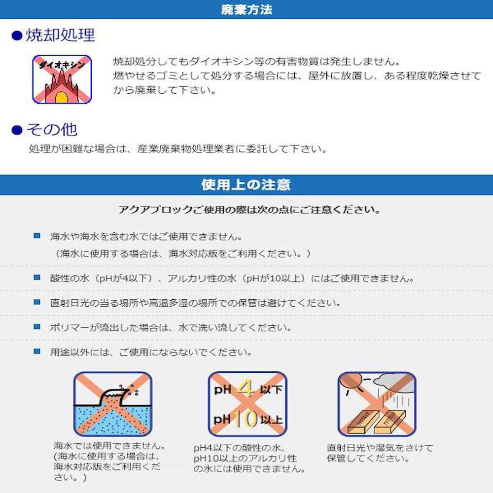20枚入り サイズ:1枚当たり:約500×380mm(吸水前)、重量:1枚当たり/吸水前:約300g、吸水後:約15kg、仕様:真水対応、再生利用可能、NETIS(新技術情報提供システム)登録品(登録番号:CG-100027-VE)
