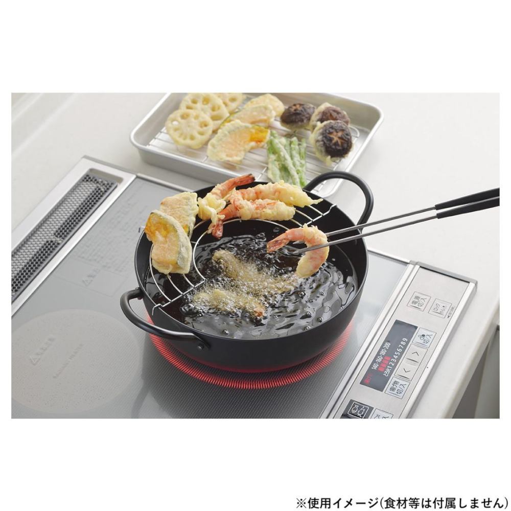 わたしのこだわり 鉄鍋シリーズ 天ぷら鍋24cm シリコンコーティング 5144 全ての熱源に対応した鉄鍋シリーズ 底板厚3.2mmで熱伝導が良く均一に伝わるため、衣がサクッと美味しく仕上がります。さびにくく焦げつきにくいシリコンコーティングを施してあります。