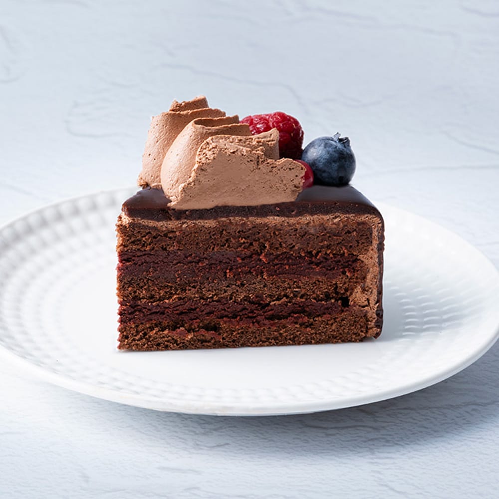 チョコレートと生クリームが織りなす、なめらかで濃厚なフランボワーズガナッシュを2段重ねにしました。アーモンドプードルを使用した生地はしっとり食感でコク深い味わいが広がります。 ●内容量直径約15cm ●賞味期限冷凍30日