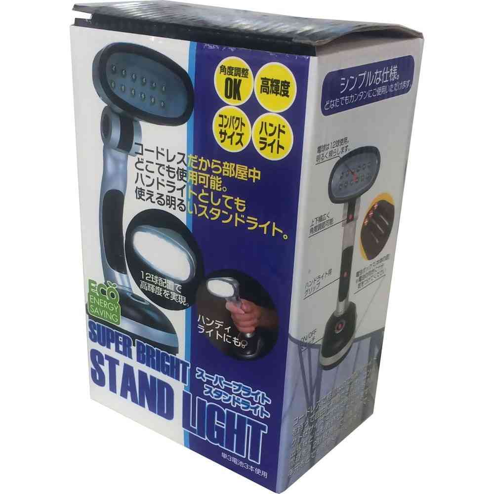 コードレスのスタンドライトで家中どこでも手元を明るく誰でも簡単に使えるシンプルな操作と、どこでも使える便利さ。 電球を12球使用していますので、手元を明るく照らします。 コードレスで軽量なので部屋中ライトを持って自由に移動できます。 連続点灯時間:約60時間 ●使用電池:単三電池×3本(電池別売り)