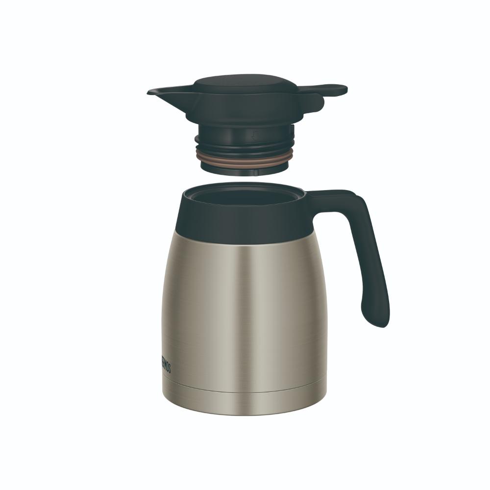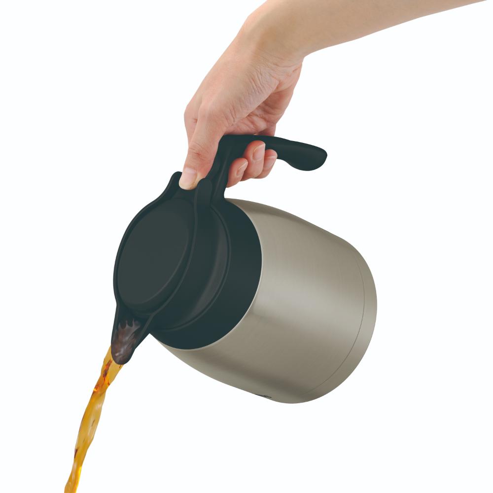 食洗機対応の卓上ポットが新登場! 食洗機対応 ワンタッチで注ぎやすい 7cmの広口設計で手を入れて洗える ステンレス製魔法びん構造で高い保温・保冷力 簡単に分解できて、流路まで洗える中せん 軽量・コンパクト設計