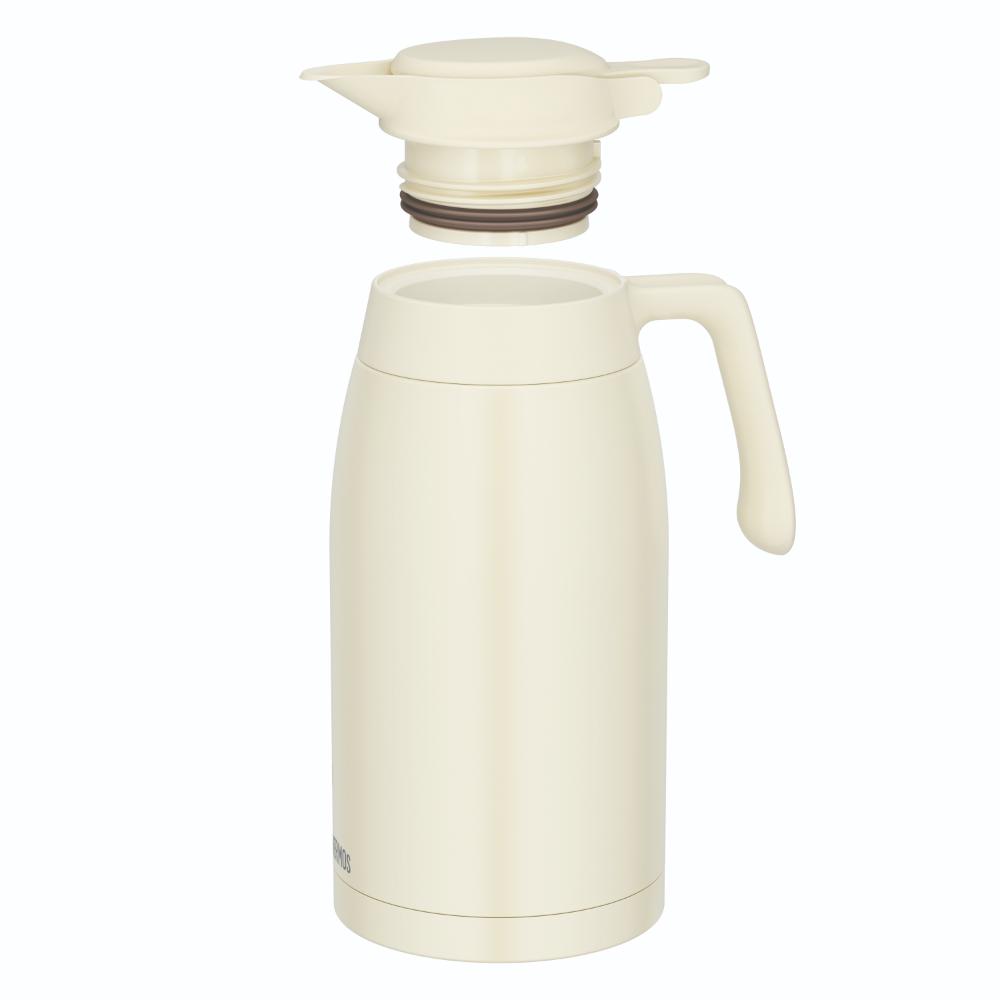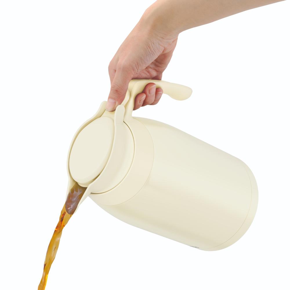 食洗機対応の卓上ポットが新登場! 食洗機対応 ワンタッチで注ぎやすい 7cmの広口設計で手を入れて洗える ステンレス製魔法びん構造で高い保温・保冷力 簡単に分解できて、流路まで洗える中せん 軽量・コンパクト設計