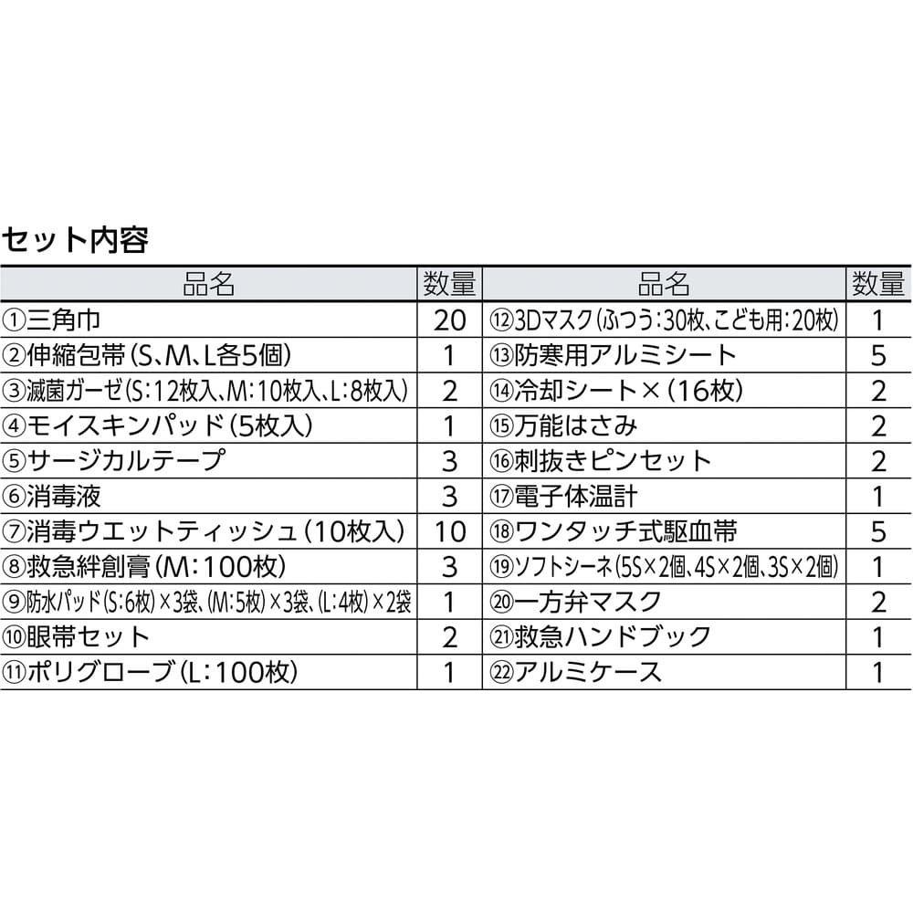 ●アルミケース入りの多人数向け救急セットです。●外形寸法(mm)幅:435●外形寸法(mm)奥行:295●外形寸法(mm)高さ:340 質量8.3kg