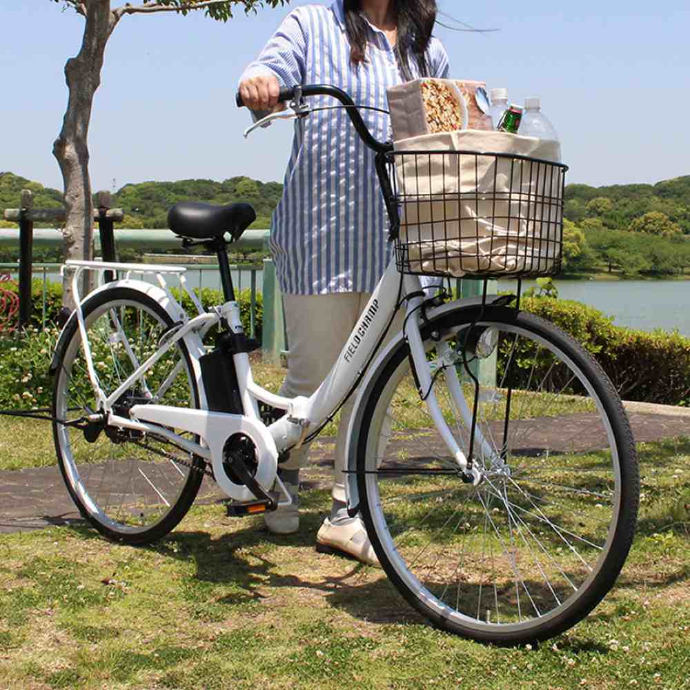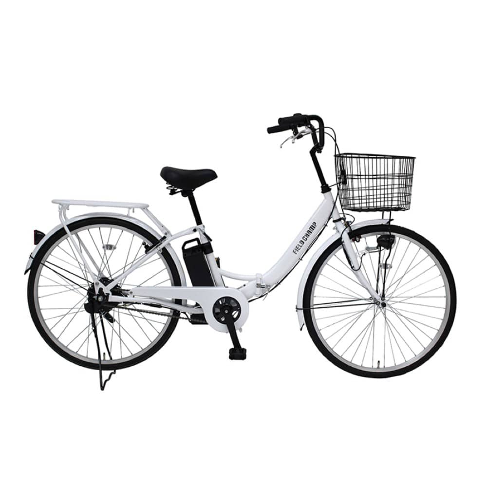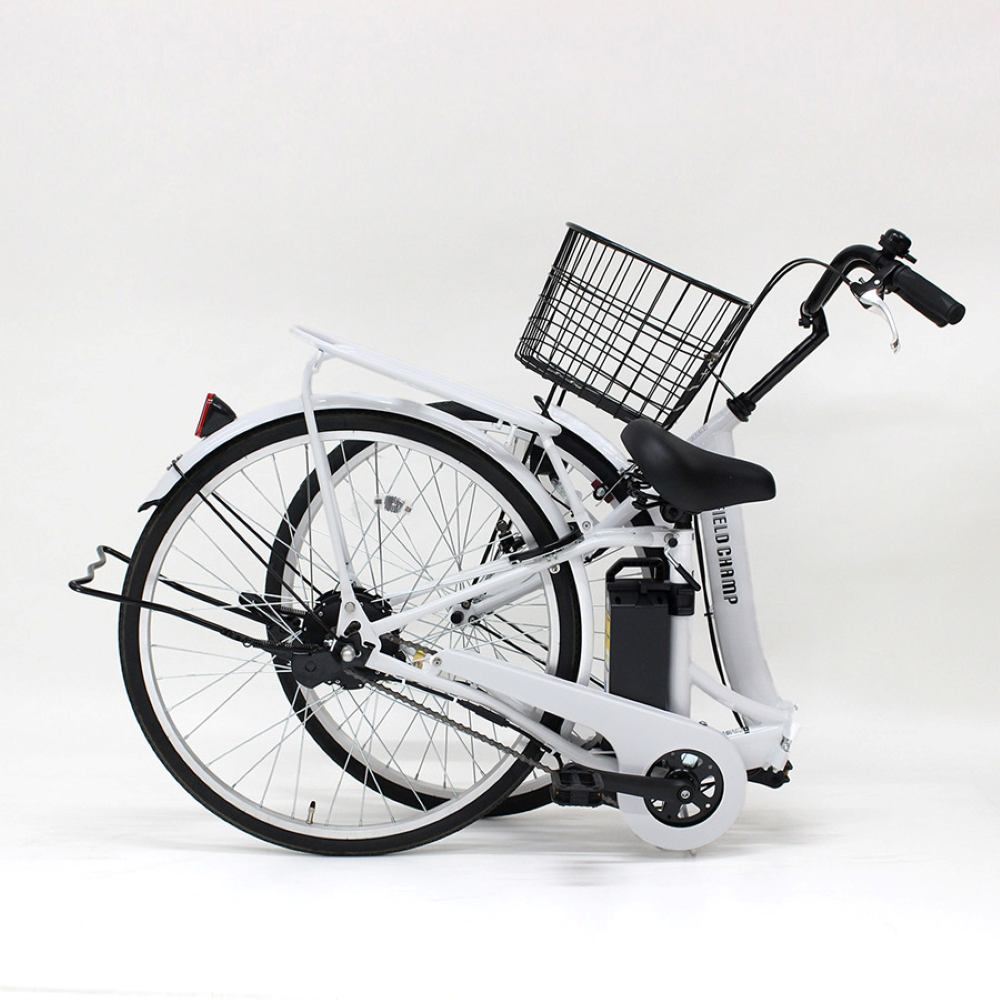 自転車、折りたたみ自転車、折り畳み自転車、通勤、通勤用、通学、通学用、旅行用、プレゼント、ギフト、軽量、コンパクト、コンパクト収納、持ち運び、収納、人気モデル、おすすめ、かっこいい、かわいい、MG-FCP100EB、電動アシスタント、電動、電動アシスト軽快車、アシスト機能、フィールドチャンプ、FIELD CHAMP、買い物、女性、PSEマーク、簡単、シンプル、1モードアシスト仕様、26型、ホワイト、白、パールホワイト、持ち運び便利、ちょい乗り、かご付き、スチールフレーム、折りたたみフレーム、折り畳みフレーム