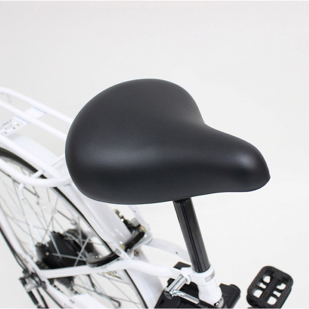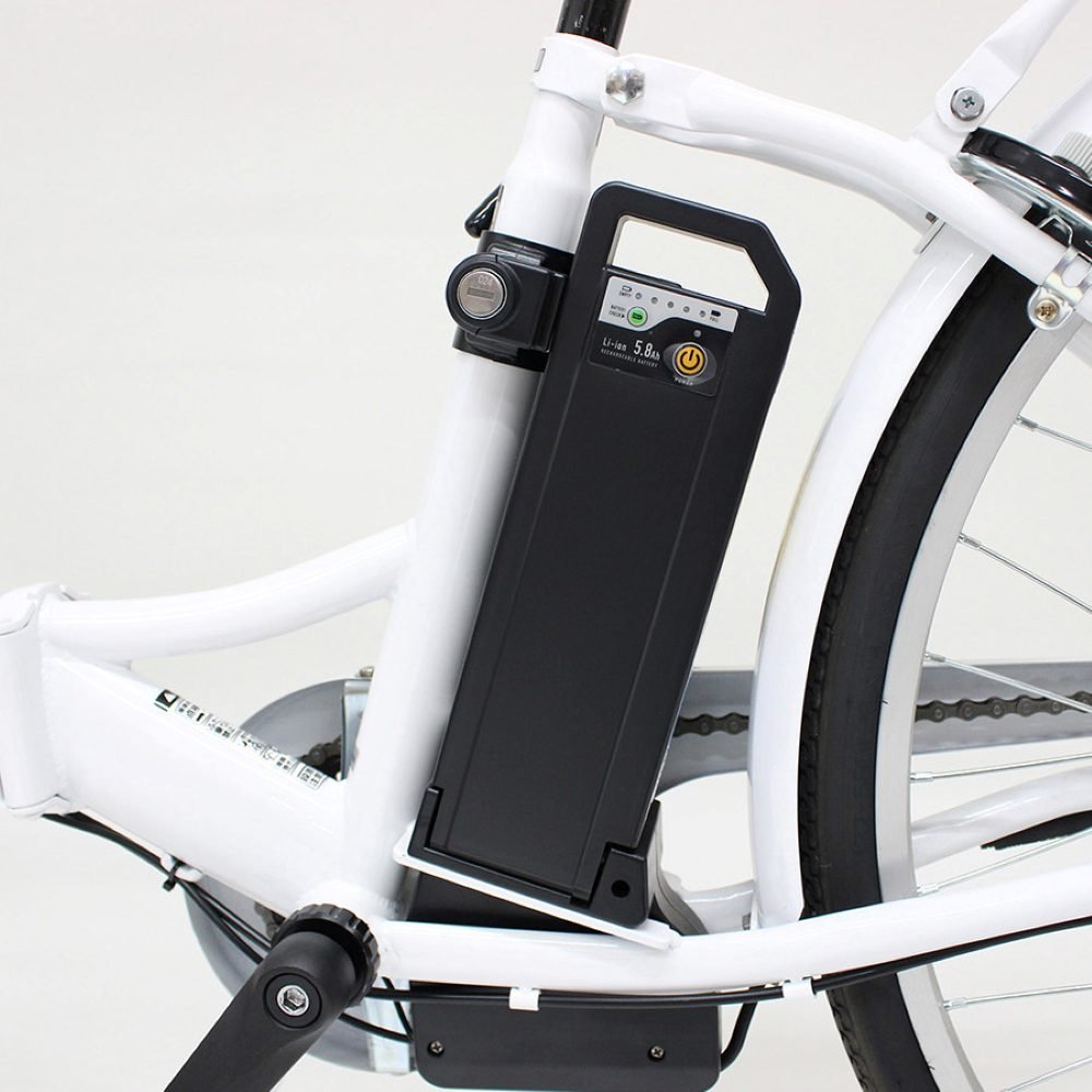 簡単シンプルの1モードアシスト仕様! お買い物や通勤・通学にも最適な1台。 ・リチウムイオンバッテリー:HB-BAD05D(容量:5.8Ah)/重量:約1.40kg ・ブラシレスモーター(定格出力:250W) ・充電器:電源AC100V~240V ・充電時間:約3時間30分(PSEマーク) ・最大約35km(充電1回分/シングルモード) ・付属:バッテリー充電器・スペアキー ・カゴサイズ:W36×D31×H24cmアシスト機能・シングルギア・ 折畳みフレーム・カゴ・リアキャリア・バッテリー連動電源スイッチ・LEDライト(バッテリー電源連動)・サークルキー(本体/バッテリー共通キー)・25000g