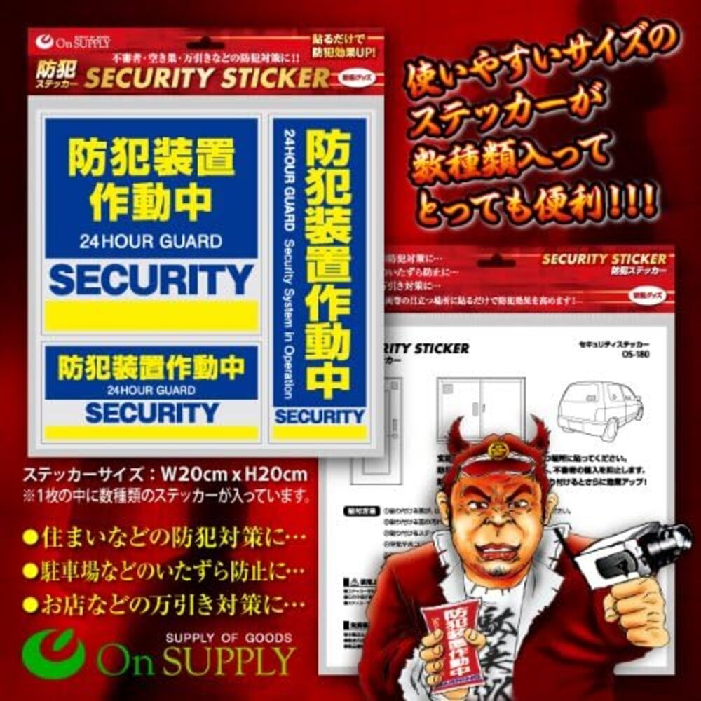 ●セキュリティーステッカーの利点・効果 1)低コストでだれでも貼れる簡単シール 2)防犯意識の高さをアピール、必然的に防犯効果が高まります。 3)防犯装置が設置されていなくても侵入者の威嚇効果があります。 4)防犯装置を実際に設置されている場所では、更なる意欲撃退効果。 5)防犯ダミーカメラ等と一緒にご使用されると更に効果的です。