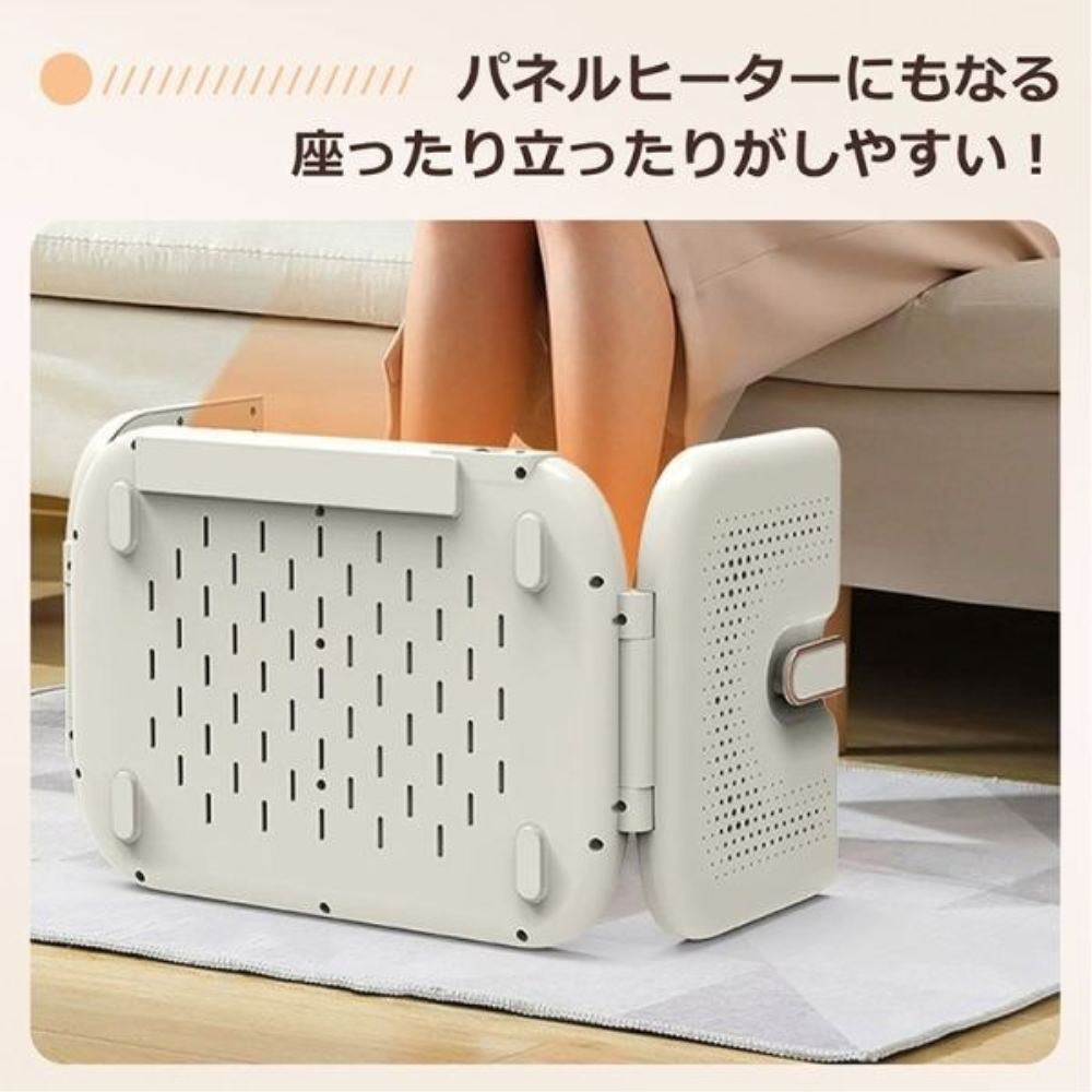 3面多機能フットウォーマーです!●三面発熱●4段階温度調整●使用パターンは様々●空気が乾燥しない暖房●防水仕様●作動音がないので静か●ペットもぽっかぽか●靴や靴下の乾燥にも使える●使用しないときは隙間に収納できる