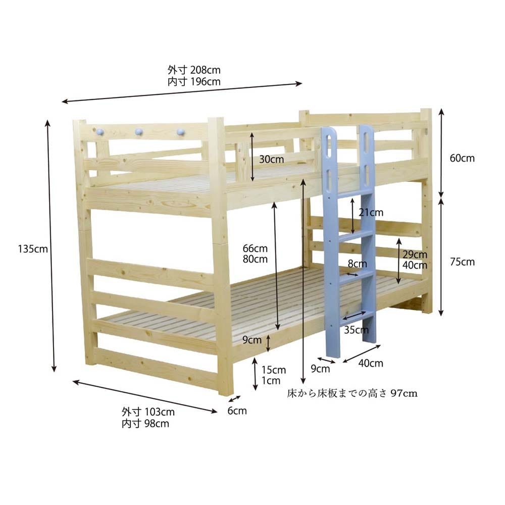 2段ベッド ベッド バンクベッド パイン材 フィンランドパイン 60角柱 スノコ式 ロータイプ