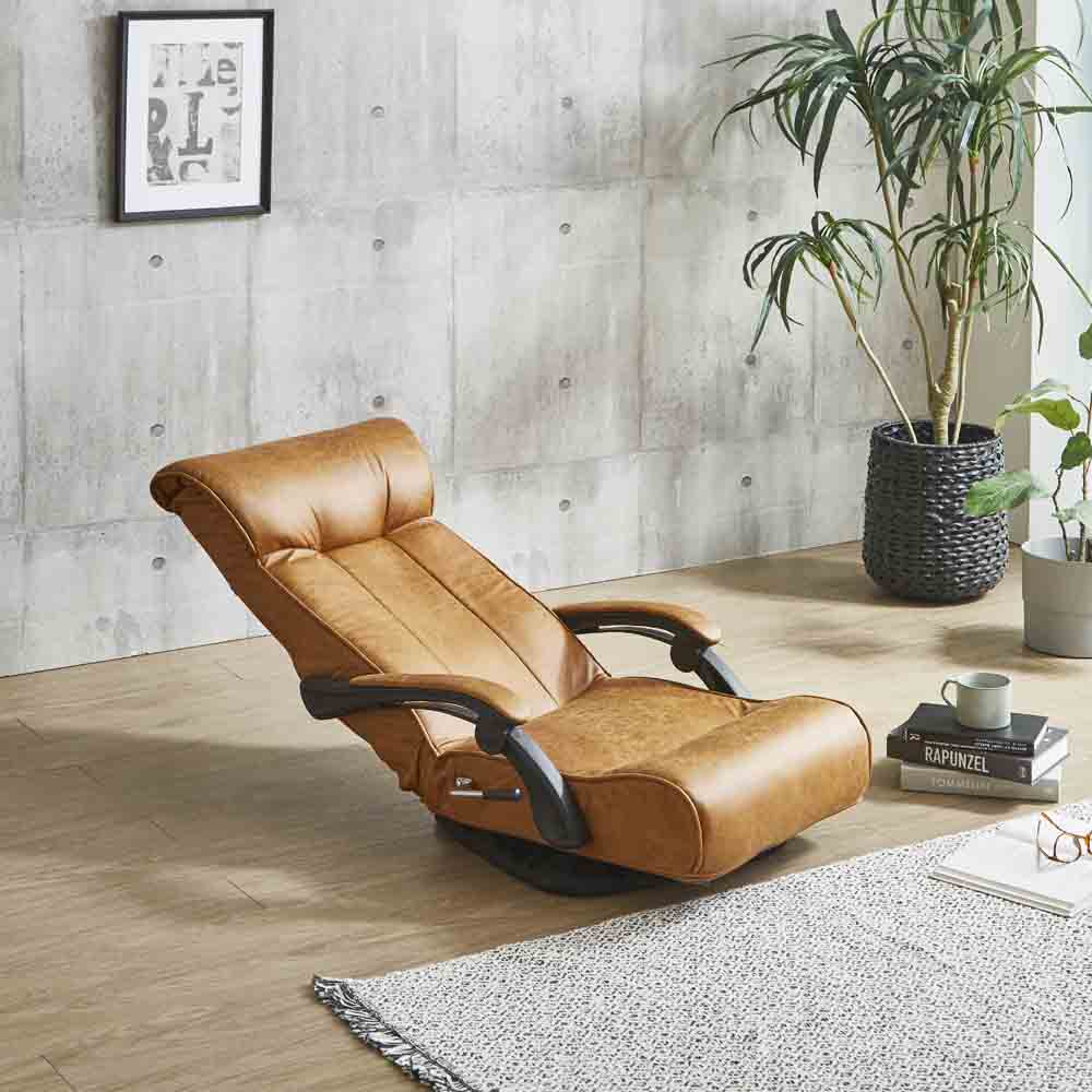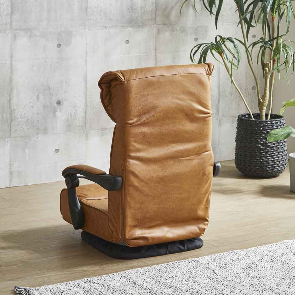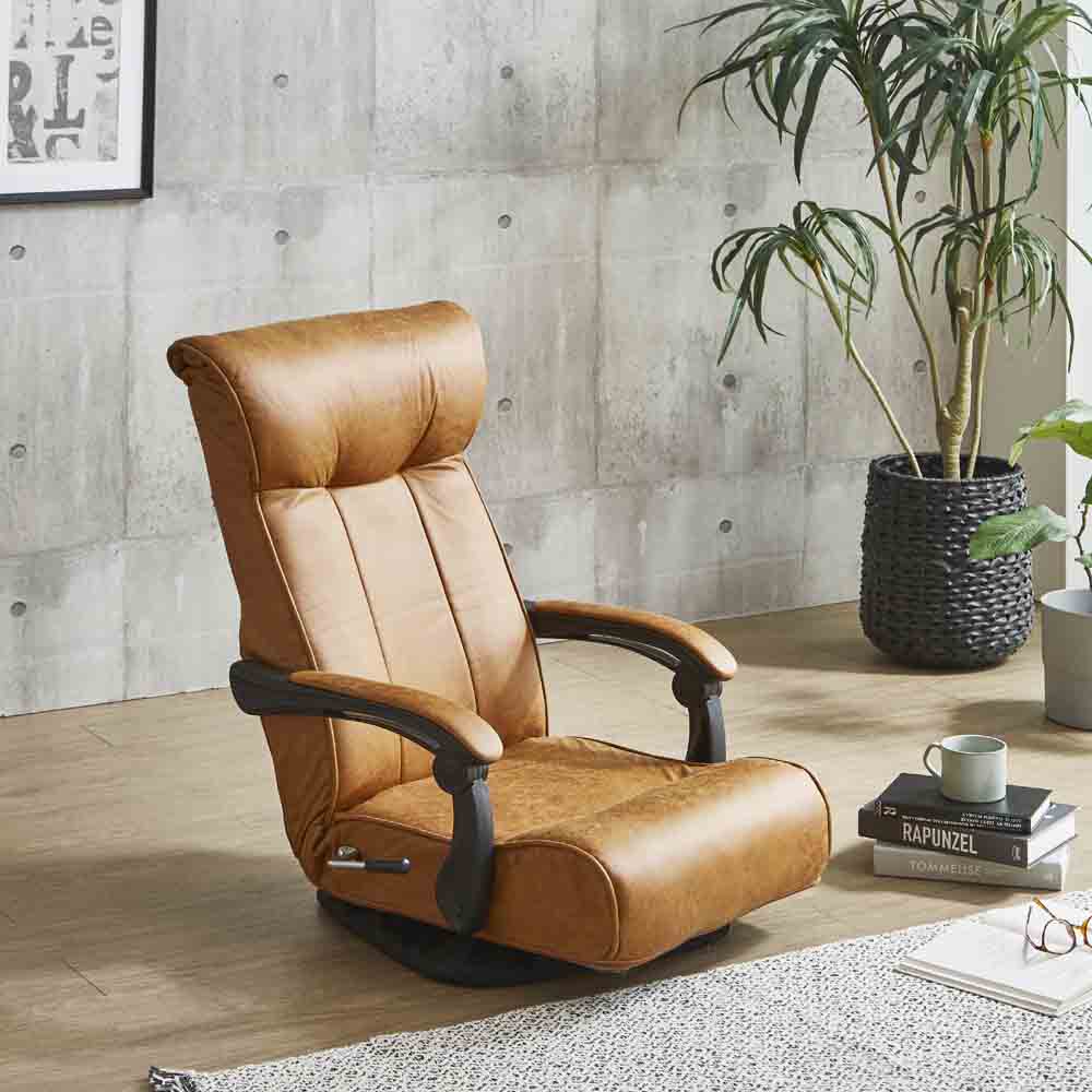 フロアーチェアー 座椅子 レバー式 ハイバック ポケットコイル 肘付 回転式 ブラウン